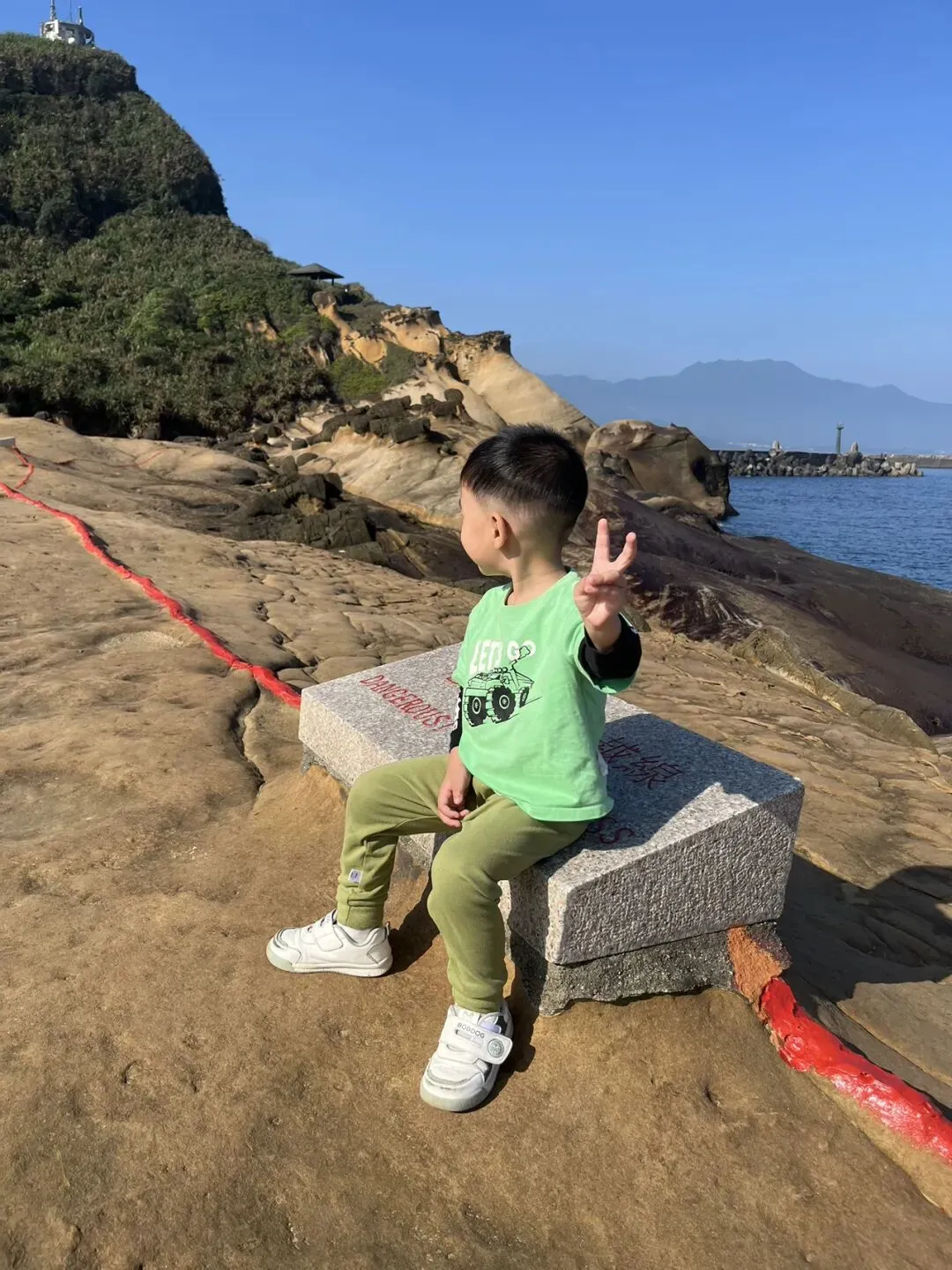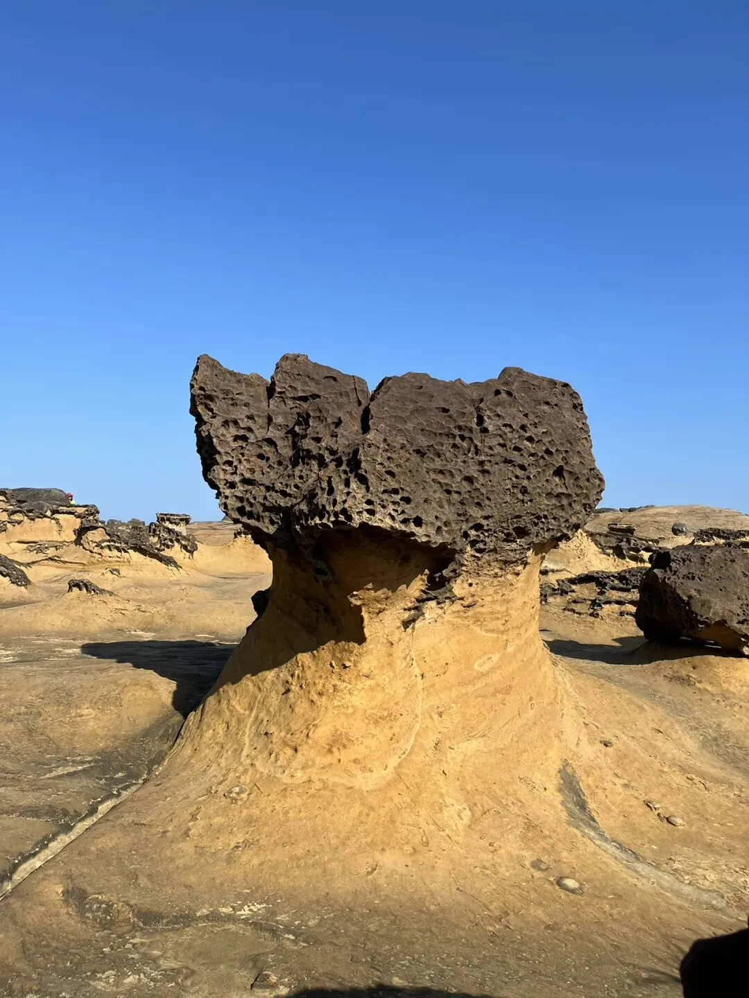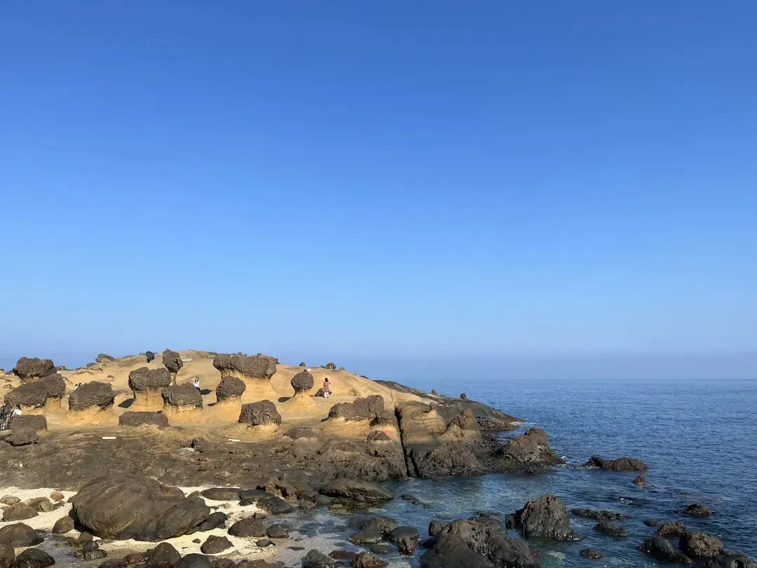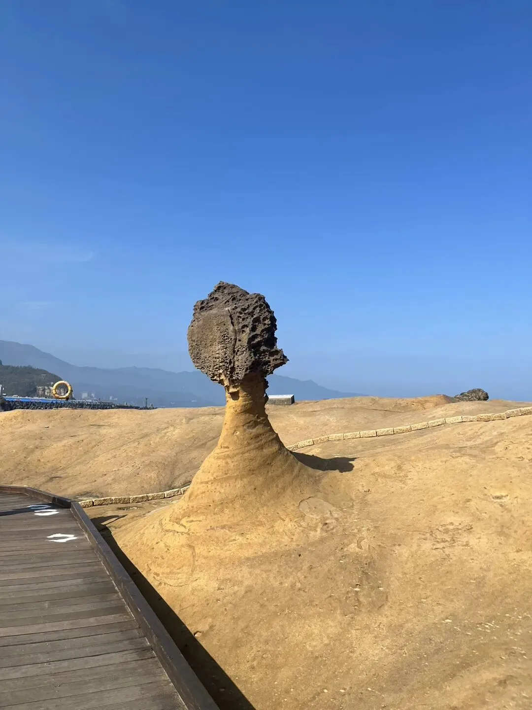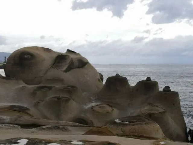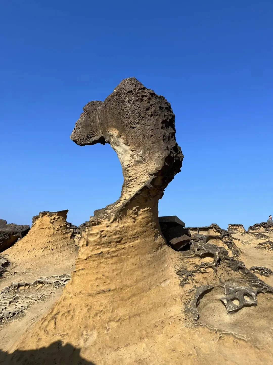野柳真是一个很美很奇特的地方,其自然景观会随着时间变化而变化,甚至消逝。大家有机会一定要来看看哦!我们在参观时,看见有些旅客站到蜂窝岩上或触摸蕈状石,工作人员一直在喊:NO TOUCH!这是辛苦了工作人员。海蚀地质其实是很脆弱的,需要大家一起好好爱护。
