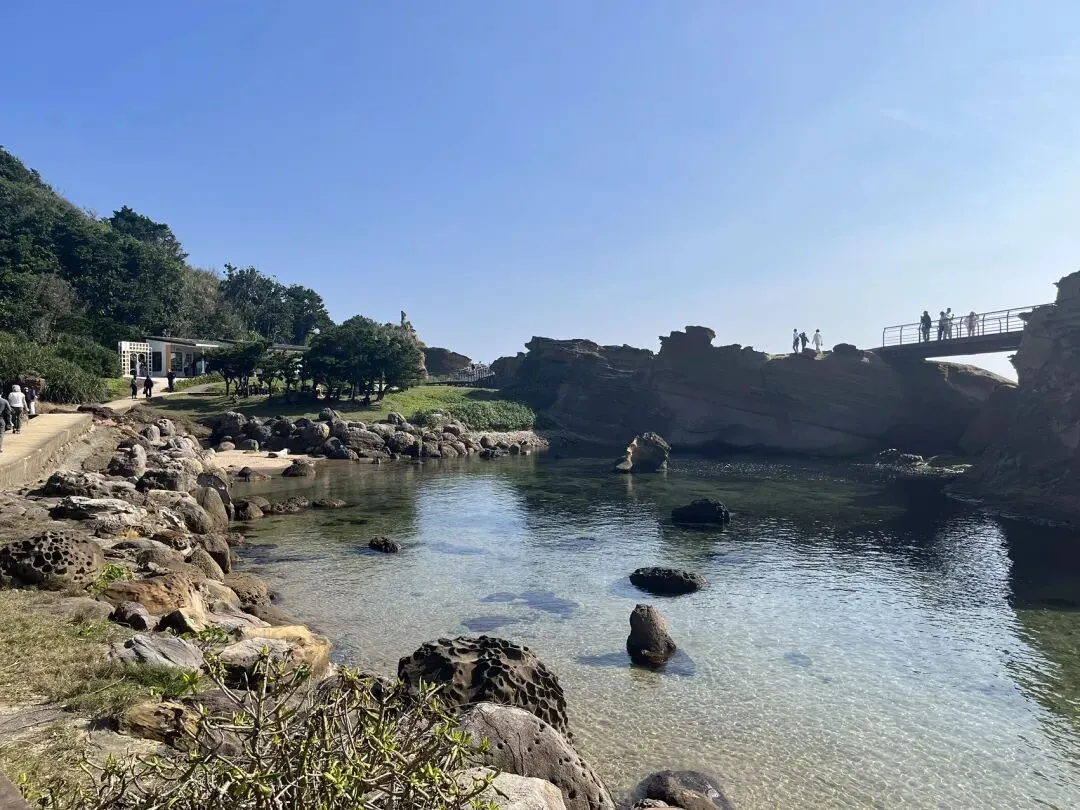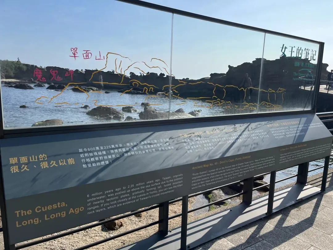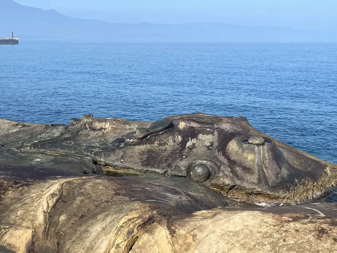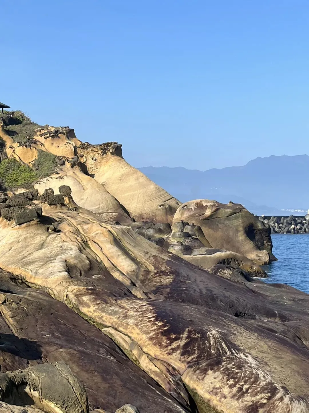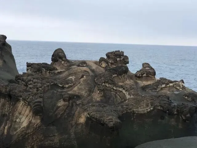 图:野柳质地公园价格亲民 第二天吃完早餐,去看了最期待的地质公园。野柳风景区是天然的地质教室,位于基隆西北方约15公里处,介于北海岸的金山与万里之间。园区长1700米,经长时间海水侵蚀、风化以及地壳运动,形成特殊的海蚀地形景观。从金山向野柳眺望,由大屯山山脉延伸至太平洋的岬角,酷似潜入水中的海龟,因此野柳也被称作野柳龟。 野柳的岩层是形成于2500万至1000万年前的大寮层。随着时间变化呈现动态的地景,入口处有一组女王头这些年来的变化,脖子变得越来越细,有说曾经断过,后来修复了,可以看得出来,未来看到的可能是复原的样子。
