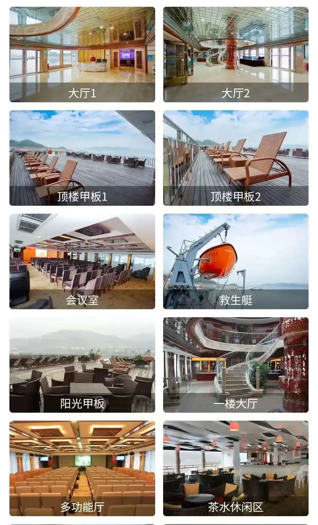 其他游船:配置简单、甲板小而陈旧、安全系数低(务必注意:客货混装轮渡、而非专用游轮)----请务必索要真实游船图片,以防上当受骗! 4