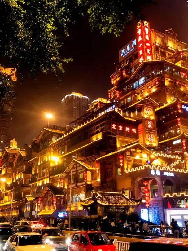 后前往【重庆洪崖洞】江景和城市风貌完美融合,以75米高的超常落差,顺崖而上,高低错落、依山而建,成为备受世界瞩目的,独特靓丽的城市名片。仿吊脚楼式的建筑、魔幻的退台和高差、流光溢彩的夜景,让游客叹为观止。