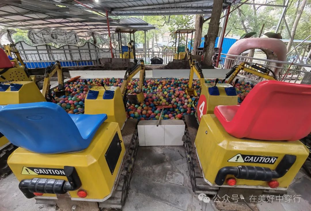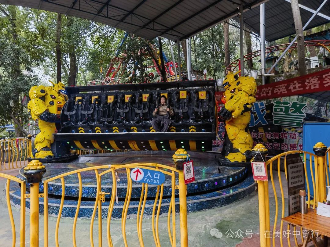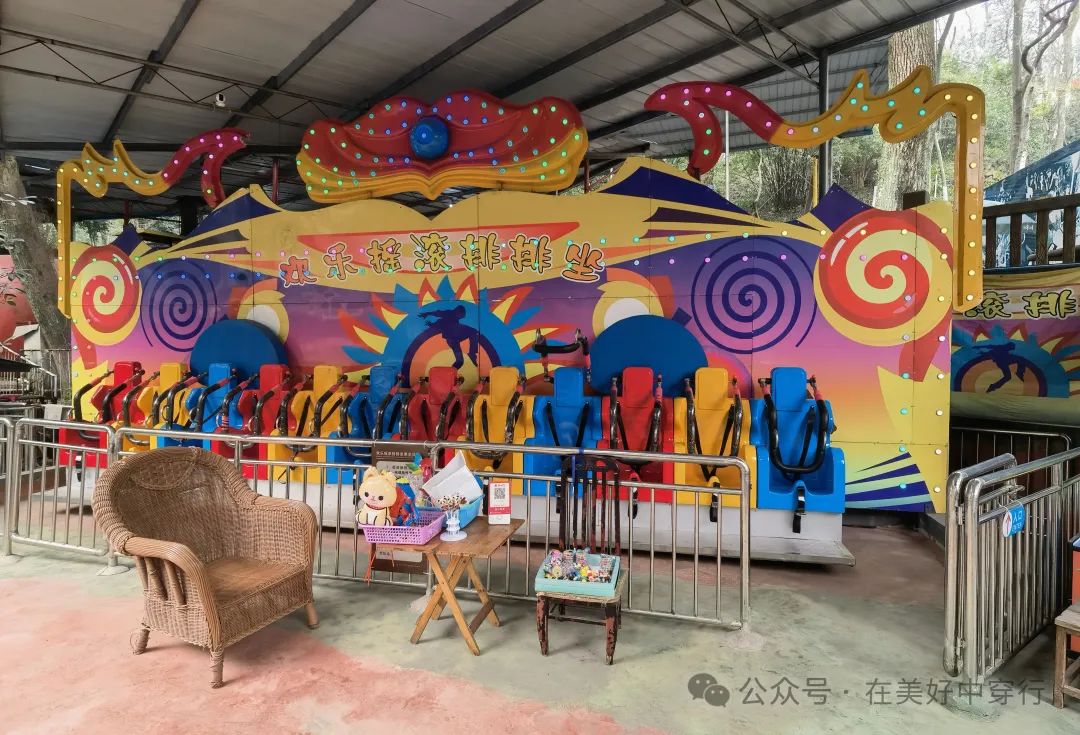 游乐设施依山而建,不完全统计有海盗船、X战警、自控飞机、碰碰车、滑翔龙、摩天龙、旋转木马、鬼屋(由以前的防空洞改成)、射击、飞镖等20多个种类的游乐设施。