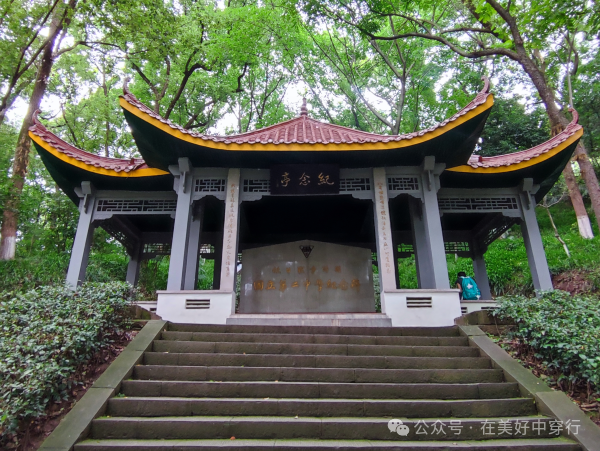 在公园大门通向蟠龙山的必经之路上,半山腰的位置有座“抗日战争时期国立第二中学纪念亭”。纪念亭建立于1998年3月,是一座仿古碑亭式建筑。在纪念亭内,设立了一方大理石纪念碑,记载了国立二中在合川办学的艰难历程与辉煌历史。