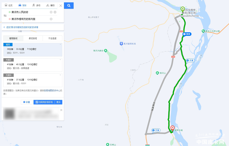 距离黑河市政府路程: