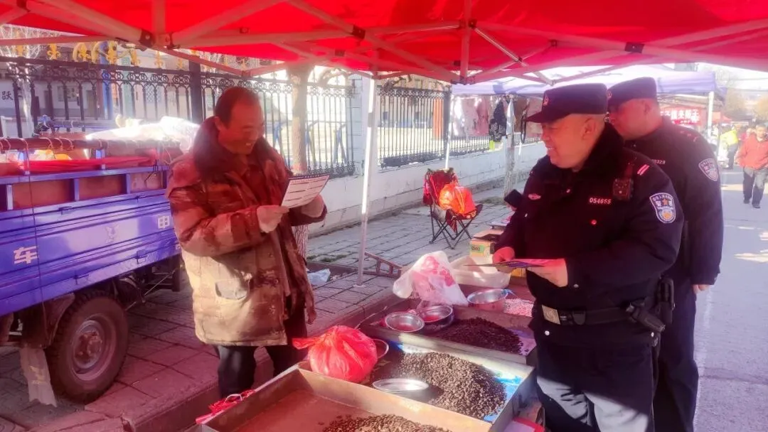 在巡逻防控的同时,执勤民警辅警同步开展安全宣传,提醒景区商户、摊位经营者规范用火用电用气,消除安全隐患;告知群众提高防骗、防盗意识,妥善保管个人财物;叮嘱家长看管好自家孩童,避免走失,将安全提醒送到每一位群众身边。