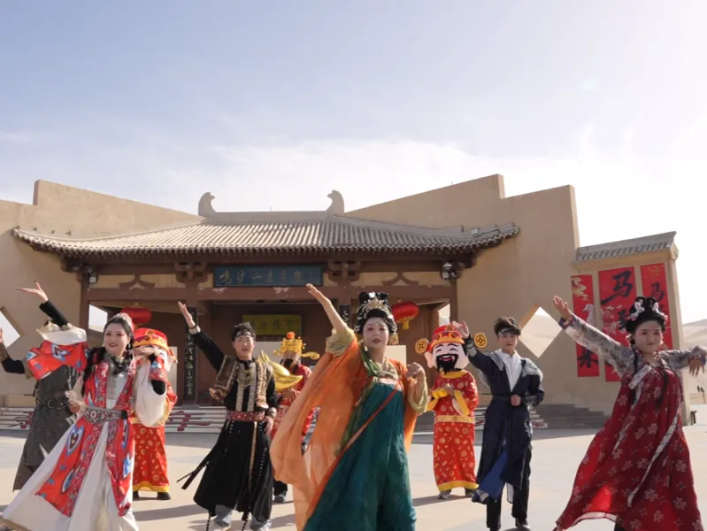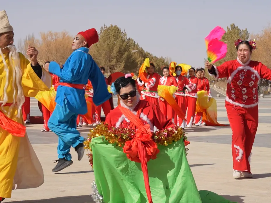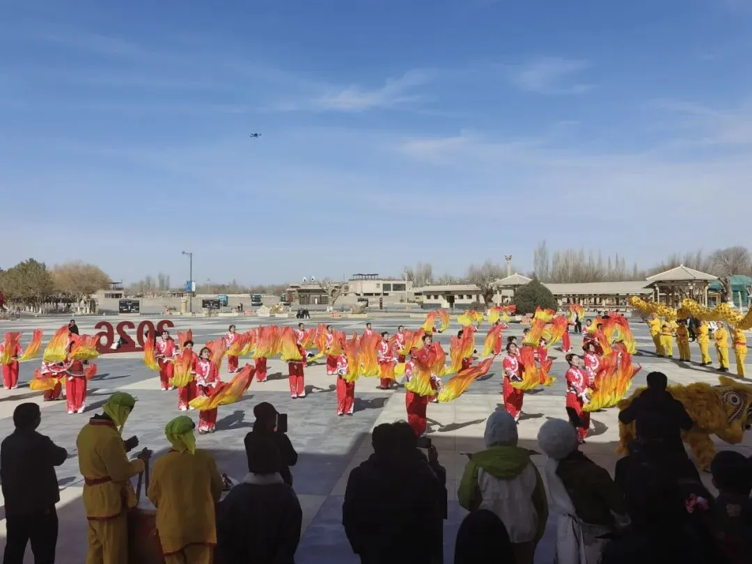 大年初八开工大吉,但鸣沙山月牙泉的年味还在延续。中午时分,社火展演热闹开场,为马年新春增添了一抹绚丽的色彩。暖阳洒在鸣月广场上,不远处是连绵起伏的沙山,社火的热闹与景区的壮美相得益彰,为游客和市民带来了一场视觉与文化的双重盛宴。