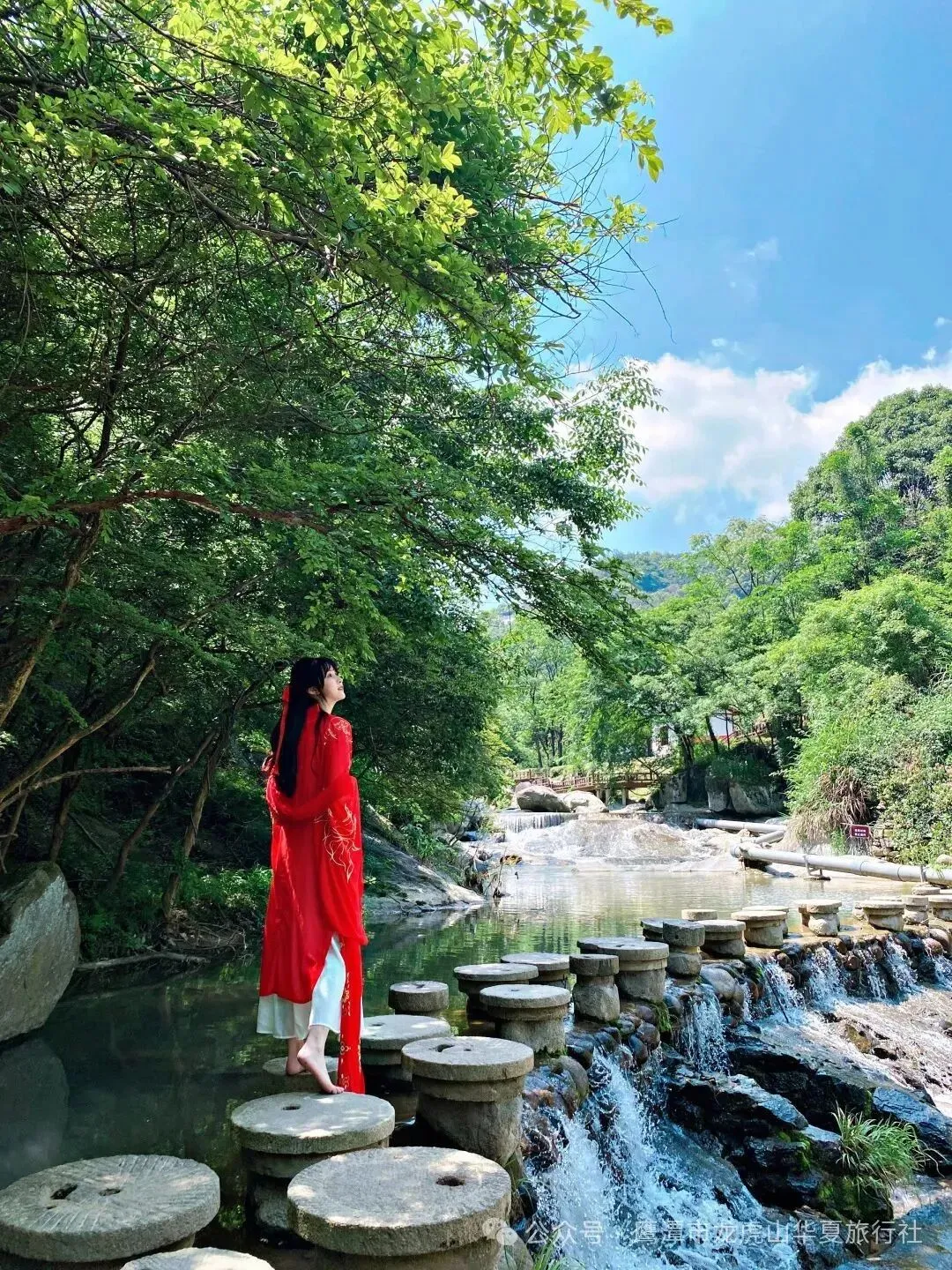 山谷的自然降温汇聚了一条15℃恒温的山谷溪水