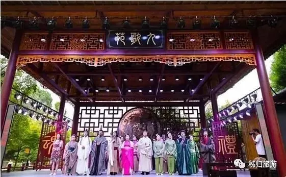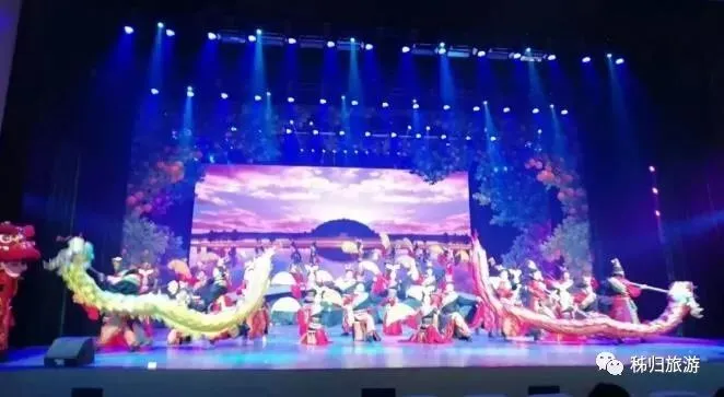 晚宴结束后,全体参会人员前往屈原故里文化旅游区内的非遗剧场,欣赏了秭归民俗情景歌舞剧《大端午》,使大家在热烈的歌舞表演中领略在屈乡流传了千年的浪漫传说,对秭归源远流长的历史文化与风土人情更加了解。