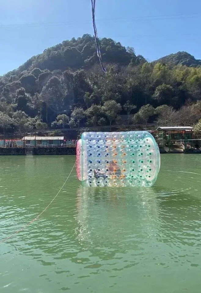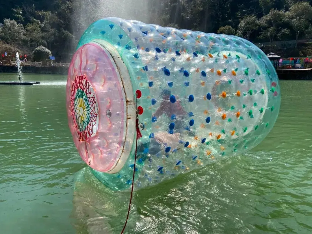 玩水上滚筒时,需要手脚并用,在滚筒里,可以体验到驾驶滚筒的乐趣,还能 感受滚筒旋转带来的奇妙失重感,是一个很不错的水上活动。