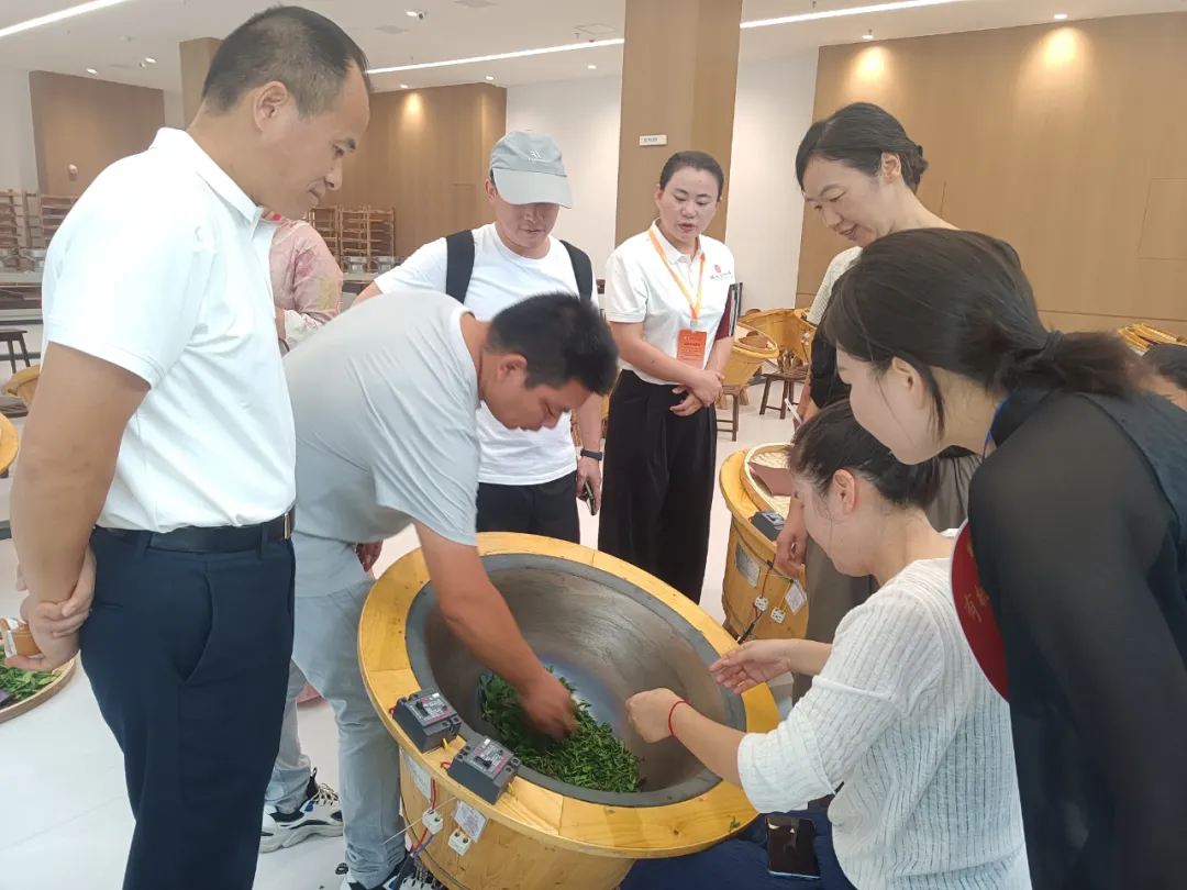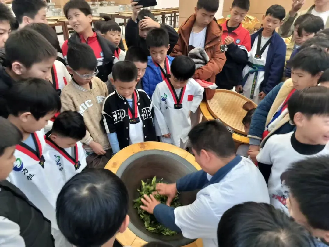 🌿非遗工坊·同心制茶:各组在茶师指导下,共同完成红茶或绿茶的制作流程,感受“温手”杀青的奇妙,并合力压制一枚专属团队的小茶饼。