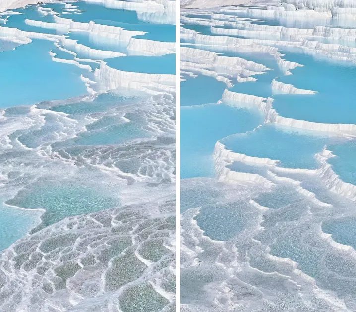 形成层层相叠的半圆形白色天然石灰岩阶梯,