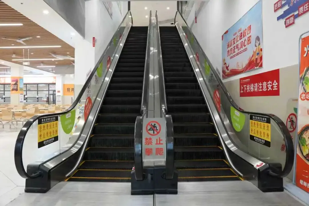 甚至仅仅两层楼的食堂都有直梯+扶梯两种选择噢!