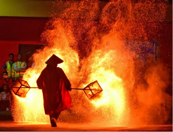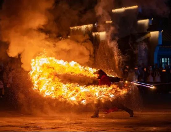 4、火壶+吐火表演:非遗技艺与惊险演绎碰撞,火壶流转间尽显匠心,吐火表演火光冲天,惊险又震撼,视觉冲击力拉满。