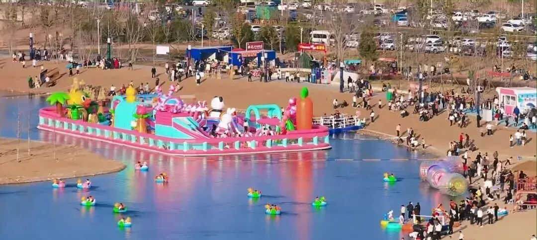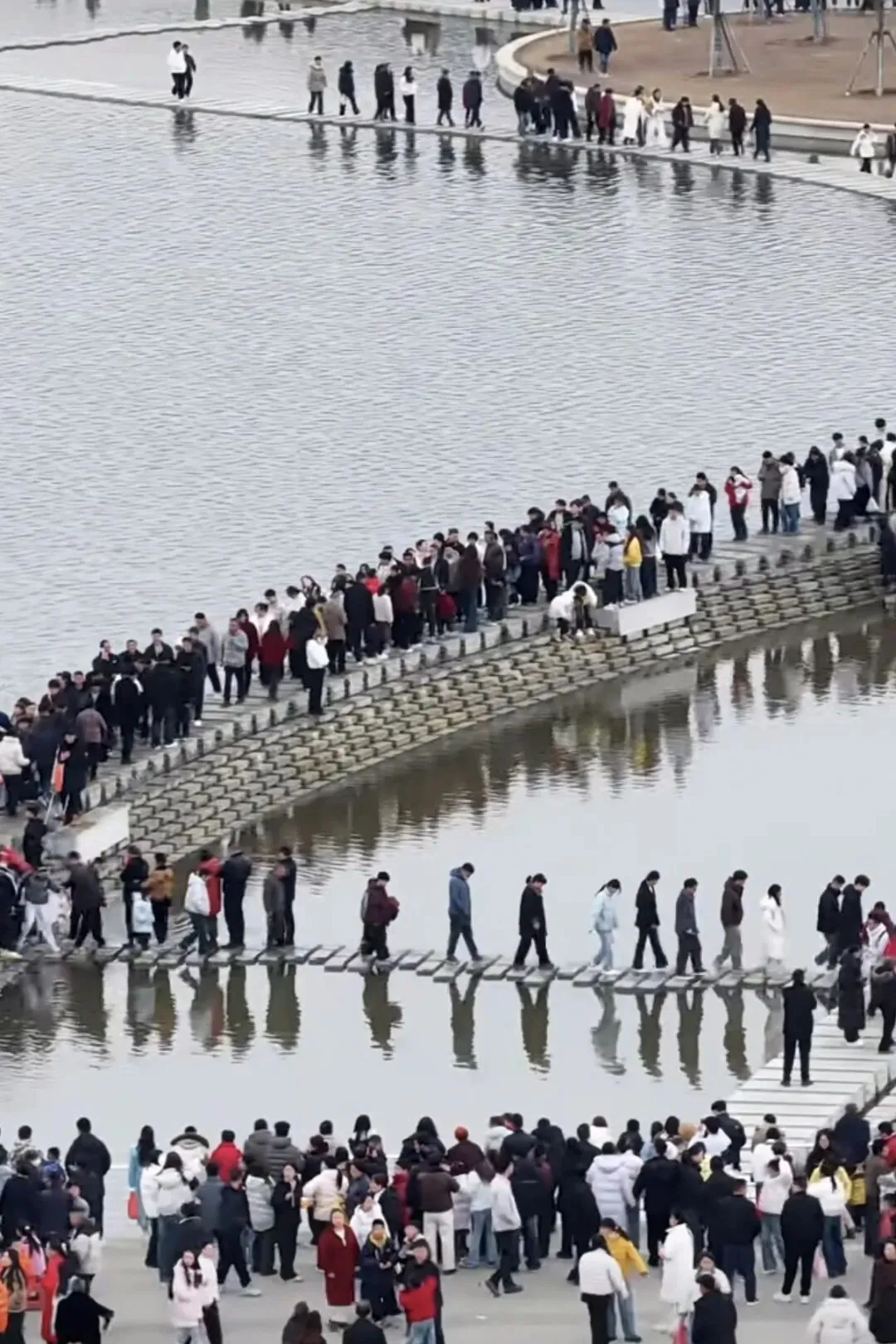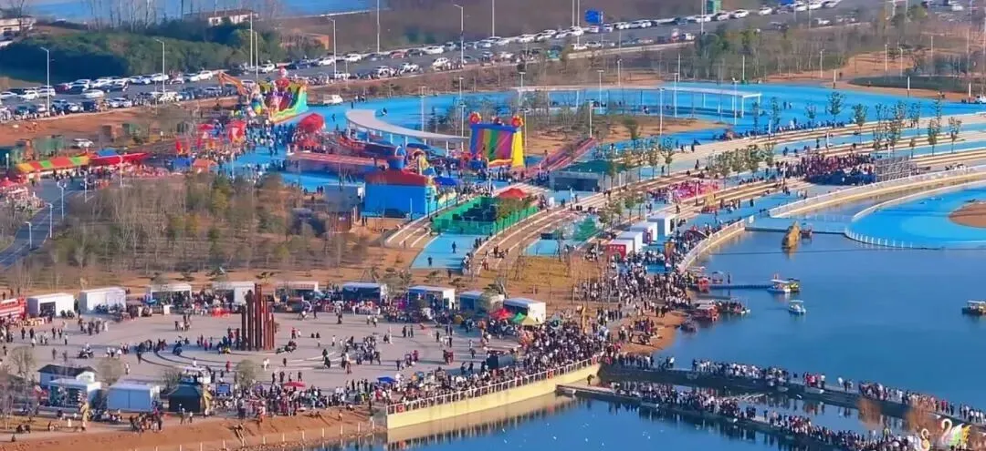 南部水城游人如织、热闹非凡。水上云梯成为热门打卡点,游客们驻足观景、与红嘴鸥互动合影,随手一拍都是大片。这里的非遗表演超精彩,民俗展演轮番上演,一系列活动让年味更浓。
