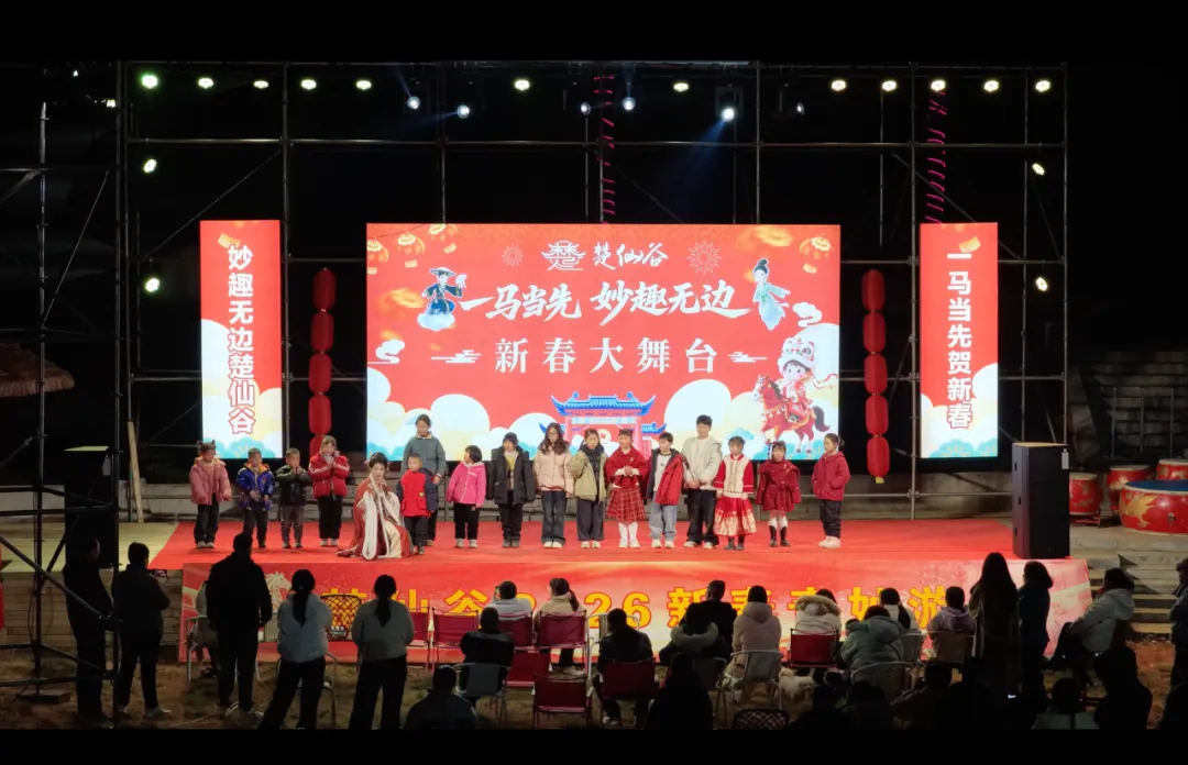 楚仙谷吸引大批游客前往,万灯长廊、星河夜景美轮美奂,财神巡游、国粹变脸等节目精彩不断,成为游客夜游打卡的热门选择。