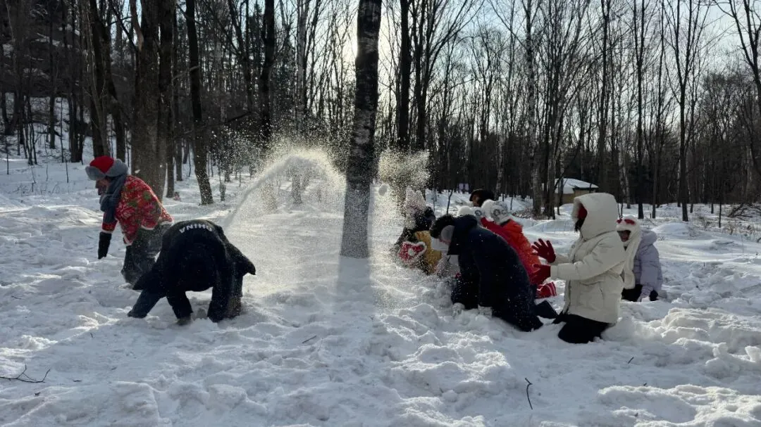 透龙山景区内,白雪覆满山峦、松枝挂雪如画,优质的粉雪厚实纯净,冰雪景观壮美如初。游客们刚一下车,便被这壮美的林海雪原所吸引,纷纷踏入雪地打起雪仗,雪球纷飞、欢声笑语不断,瞬间点燃了景区的热闹氛围。
