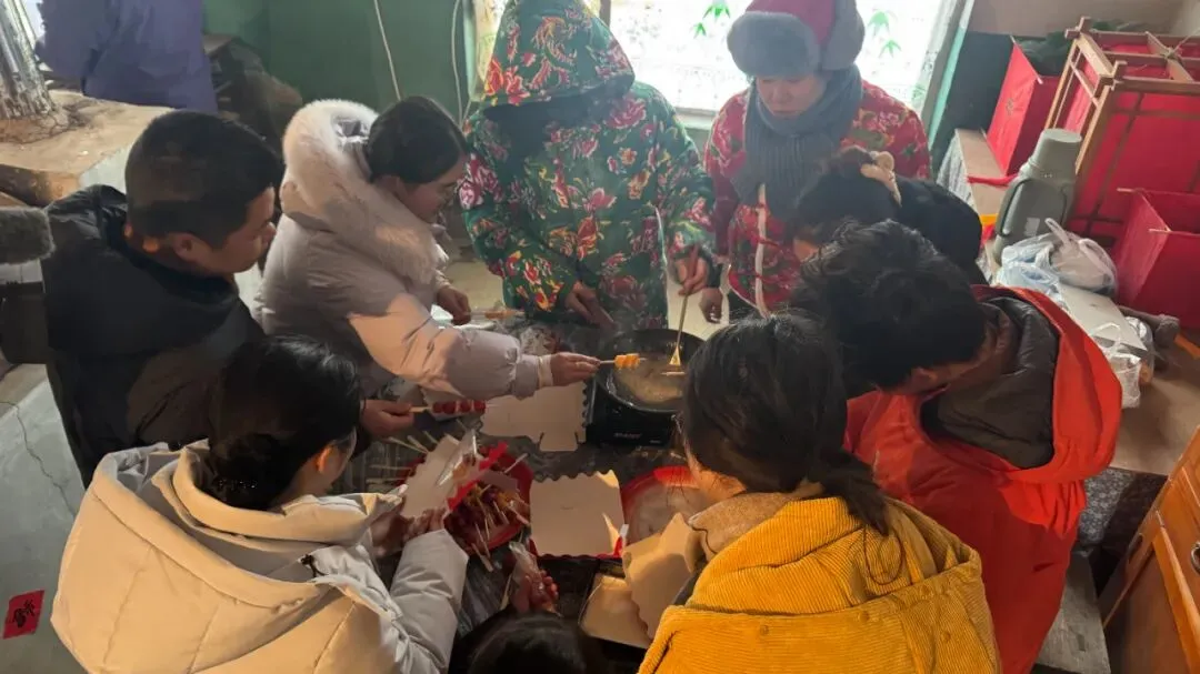 除了沉浸式赏雪玩雪,景区还准备了丰富的民俗与特色体验活动。游客们围坐在一起亲手包饺子,感受团圆热闹的年味;亲手蘸制糖葫芦,酸甜滋味裹着冰雪的清爽,满是冬日童趣;近距离体验林区传统生产作业伐木场景,感受小兴安岭林区的独特文化与历史底蕴。玩累了,热气腾腾的烤馒头、香甜软糯的烤地瓜香气扑鼻,地道的林区特色美食,让游客在冰天雪地中感受到满满的温暖与烟火气。