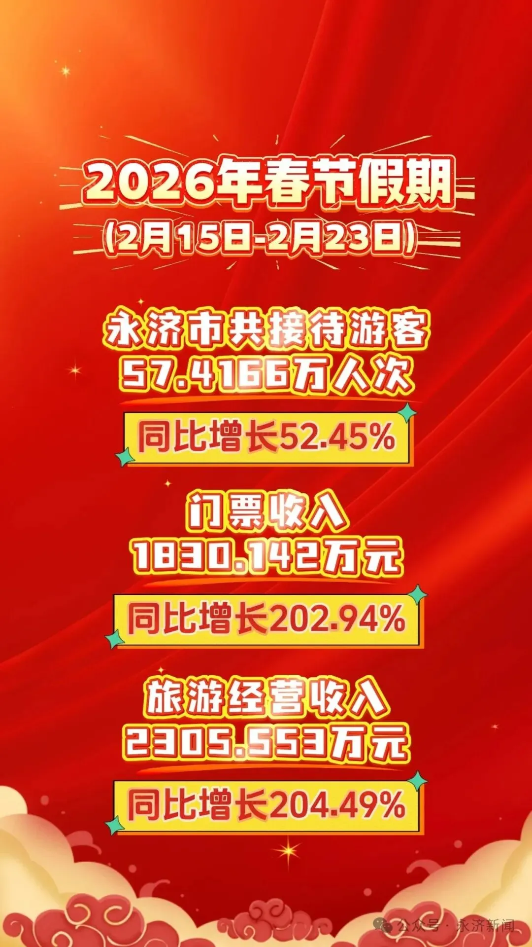【“马”力全开】春节永济旅游 57.4166万人次 2305.553万元