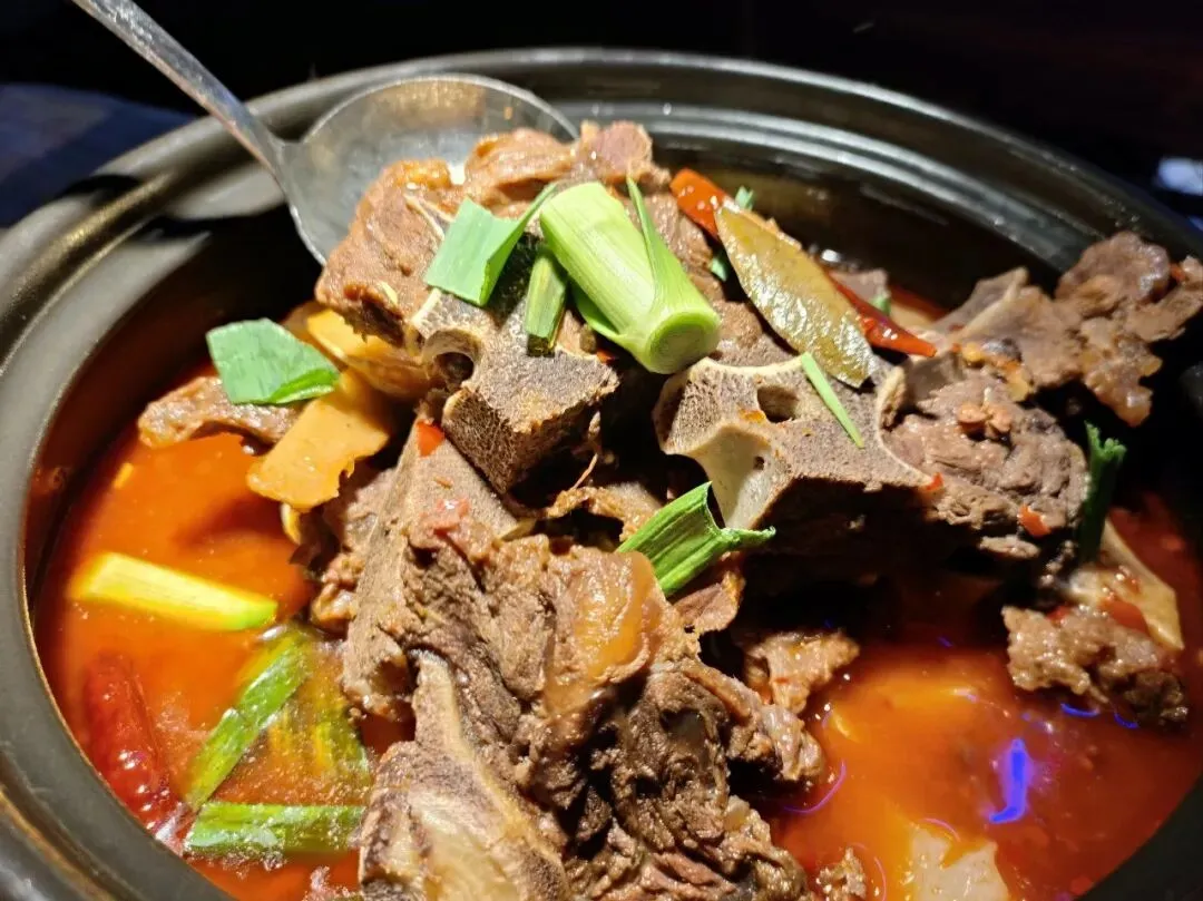 🥣 牛骨砂锅:在攀枝花吃牛一类的东西,总不会踩雷。牛骨炖了八小时,香得离谱。加碗饭,记得自己加香菜!15块一份,实在。
