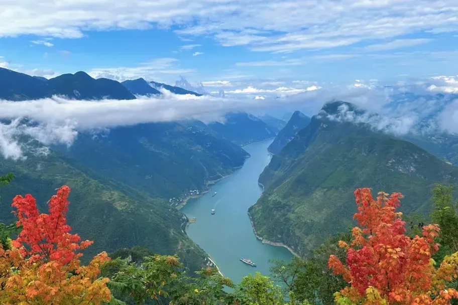 巫峡口景区是长江三峡巫峡东端门户、第四套人民币 5 元背景取景地,以 “长江第一拐” 为核心,江面狭窄、两岸绝壁对峙,山顶可全景俯瞰长江第一拐与巫峡峡谷。
