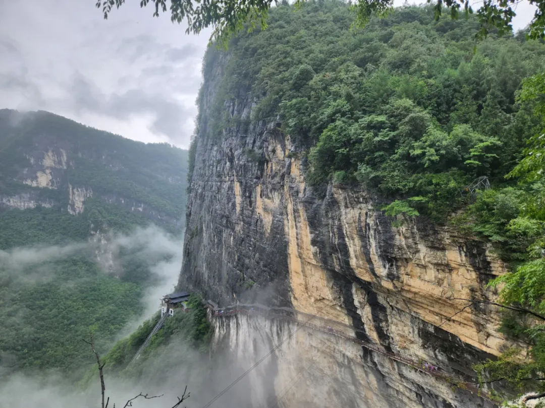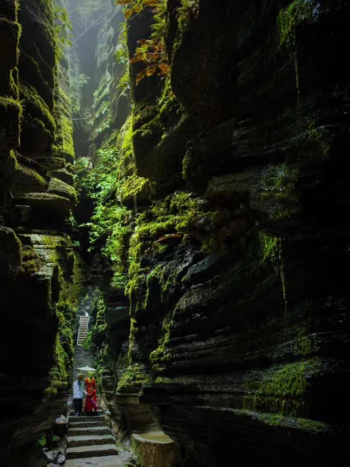 地处大巴山麓、巫山山脉尾端,整体是条形天坑秘境,平均海拔 1700 米,垂直落差超 500 米,这里至今保留着近乎原始的喀斯特生态与土家聚落风貌。