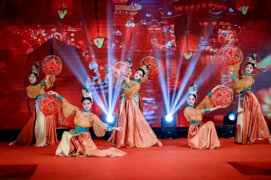 灯组深度融合唐三彩、牵手女俑等文物元素,“金狮送福”“宝相花纹”灯组尽显盛唐工匠巧思,一步一景、一灯一史。