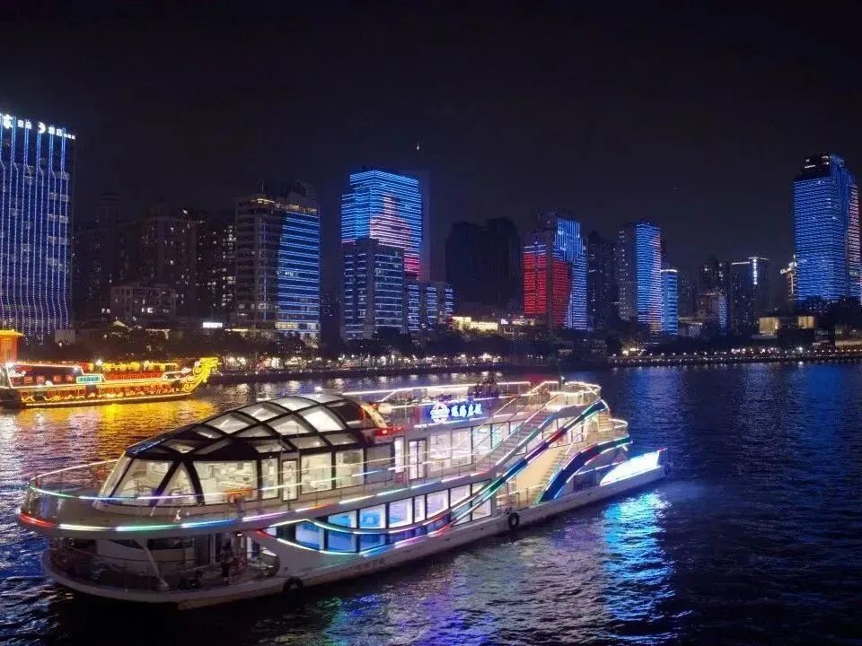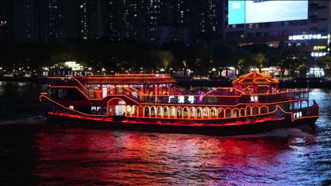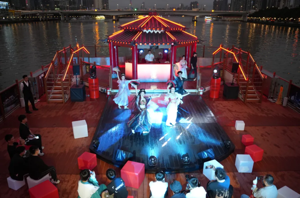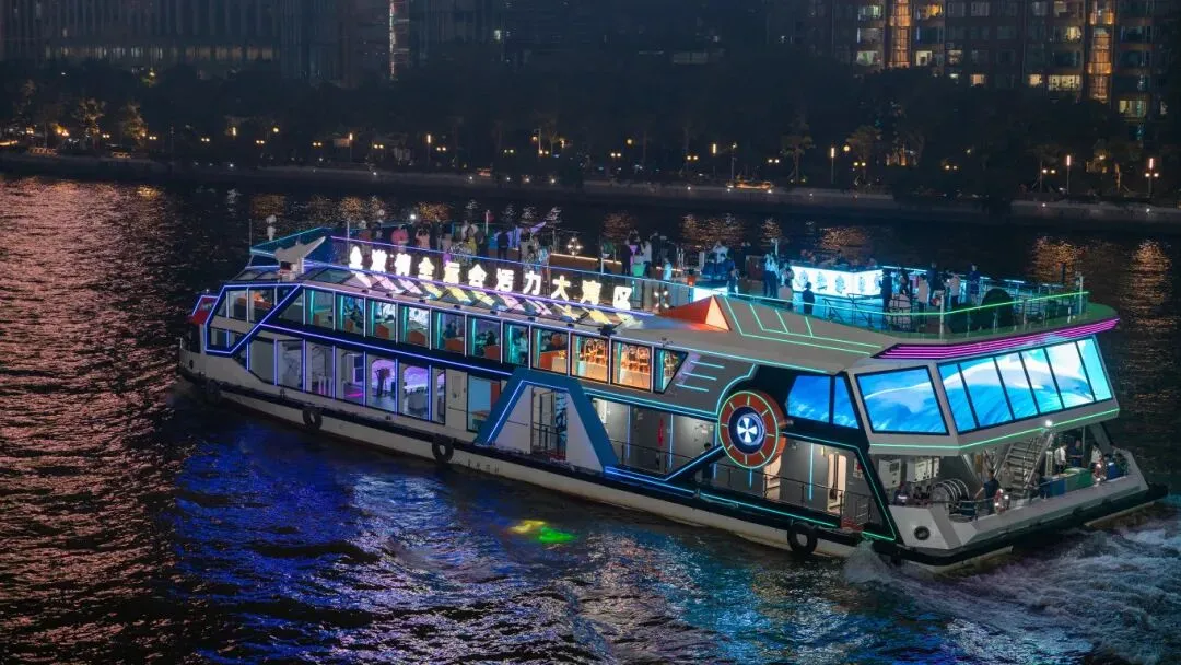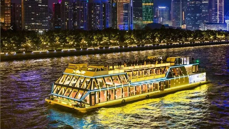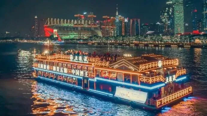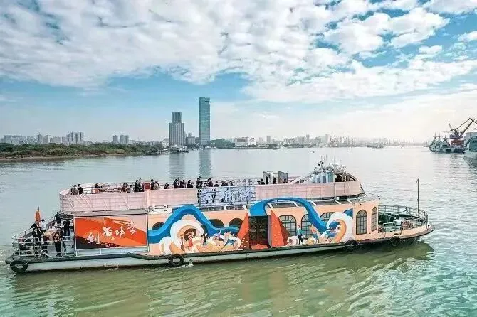 常规情况下仅开“金禧号”,作为广州首艘沉浸式国风主题游船!金禧号以岭南文化为魂,融国潮美学为形,2025年完成焕新升级后,以“水上移动Livehouse”创新定位,采用“一票通”游玩模式,打破观演壁垒,引入新派水袖舞蹈表演、国潮电音D打碟等内容,是珠江游移动新地标。