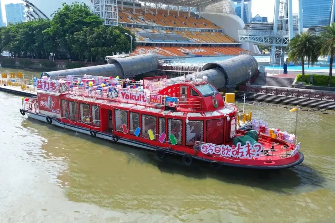 船身外观两侧是「巨型益力多瓶涂鸦」