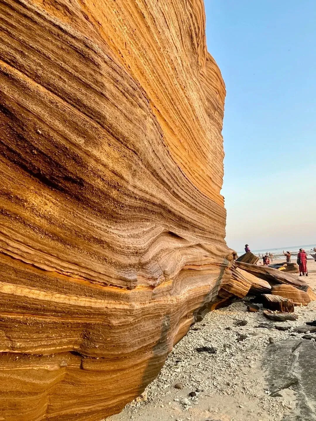 是典型的海蚀崖景观。巨大的火山岩崖壁常年有水滴沿岩层滴落,形成 “滴水” 奇观,岩壁上绿植攀附,色彩丰富;崖下是平缓的沙滩,傍晚夕阳洒在岩壁与海面上,霞光万丈,是涠洲岛公认的观赏日落的最佳地点之一。