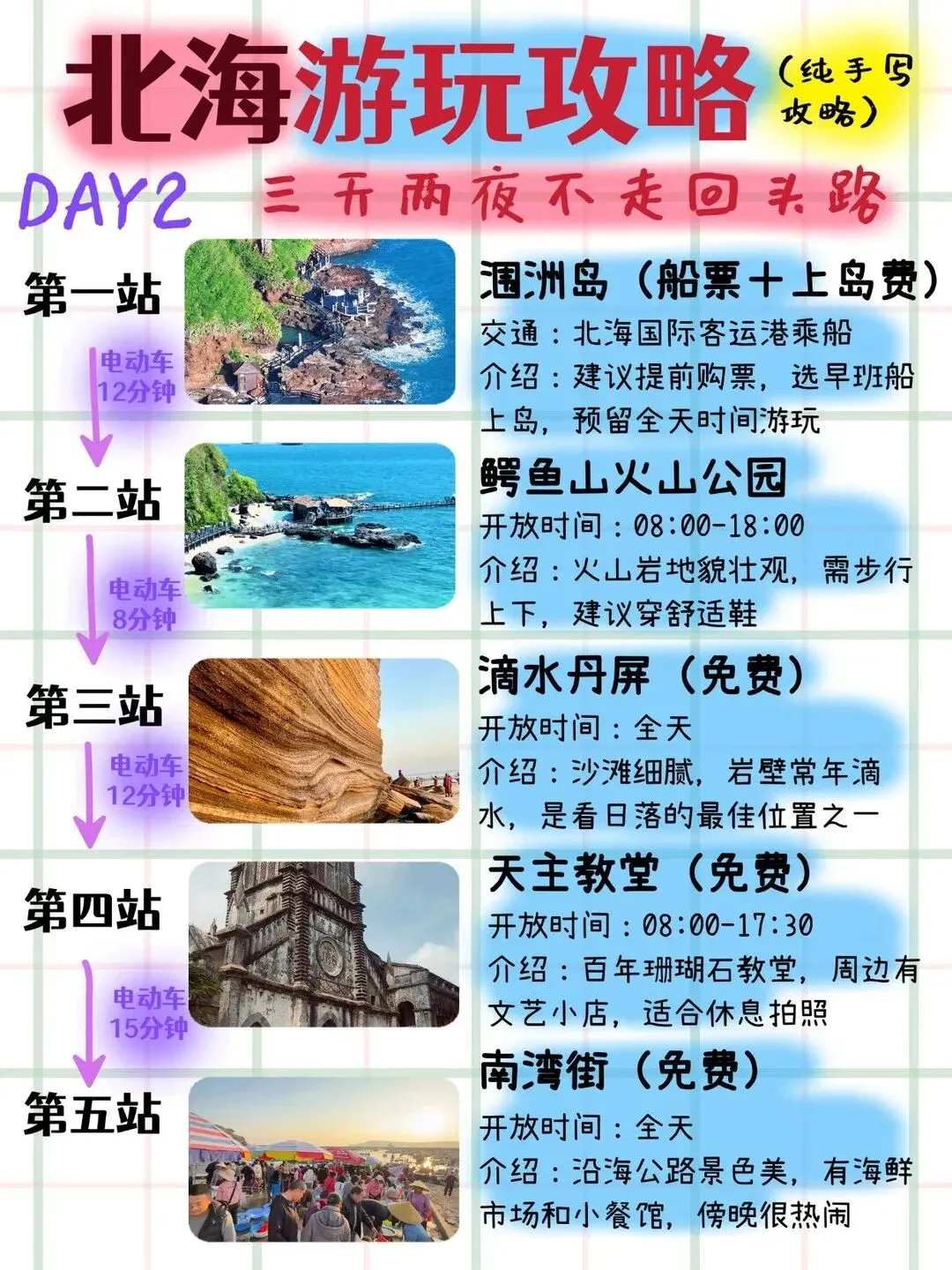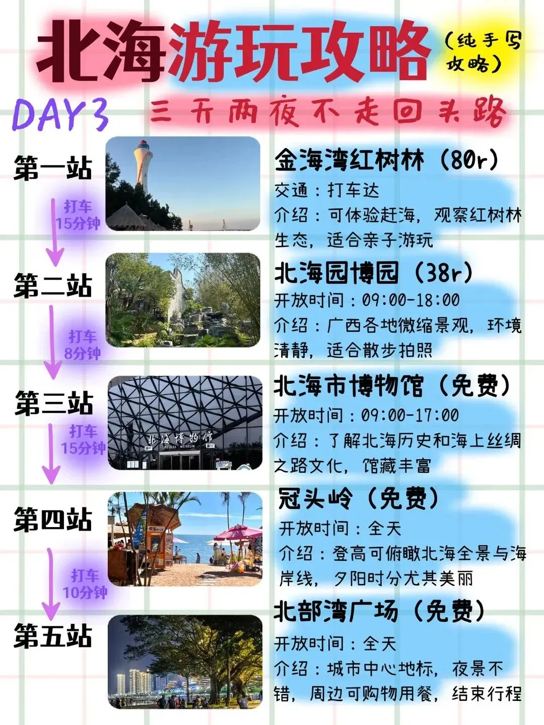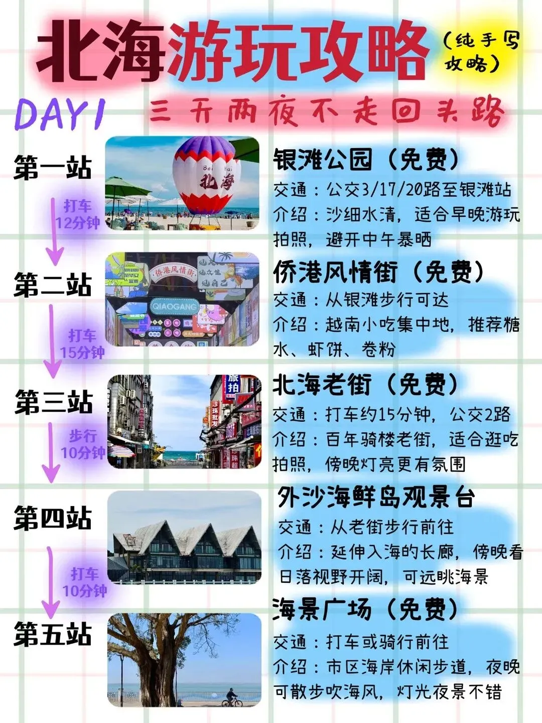 北海游玩攻略 | 3天2夜不走回头路版(纯手写打算来北海的姐妹们集合啦!熬夜手写了一份超详细的3天2夜北海游玩攻略,路线安排…注意事项……统统安排上了,你要的这里全都有!