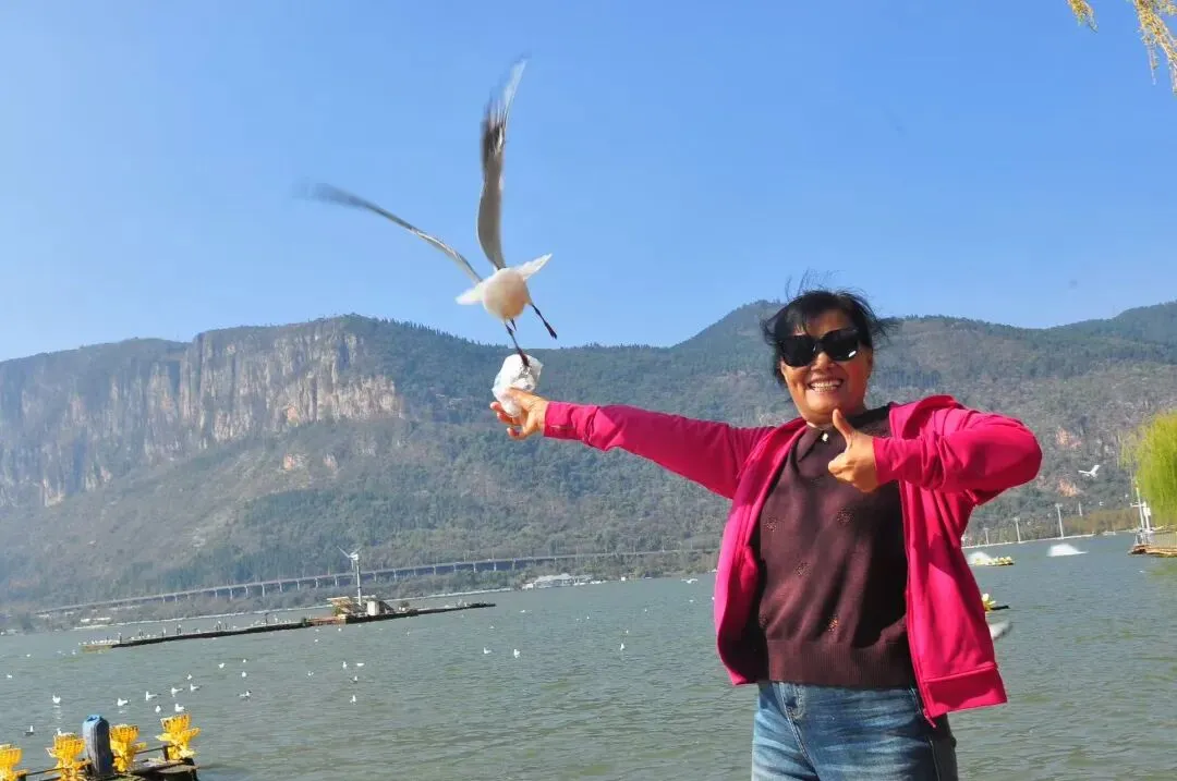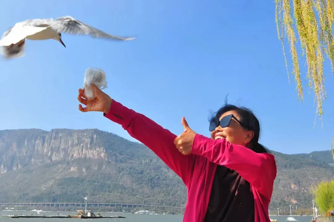 而滇池最动人的风景,莫过于漫天飞舞的红嘴鸥。这些远道而来的小精灵,或掠过湖面激起涟漪,或停驻在岸边与人亲近,伸手递上鸥粮,它们便轻盈地停在指尖,白羽翻飞,鸣叫声清脆悦耳。没有疏离,没有惊扰,游人温柔投喂,飞鸟自在相伴,这一刻,人与自然和谐共生的美好,被诠释得淋漓尽致。一湖碧水,万只鸥鸟,是昆明最治愈的浪漫,也是此行最难忘的温柔瞬间。