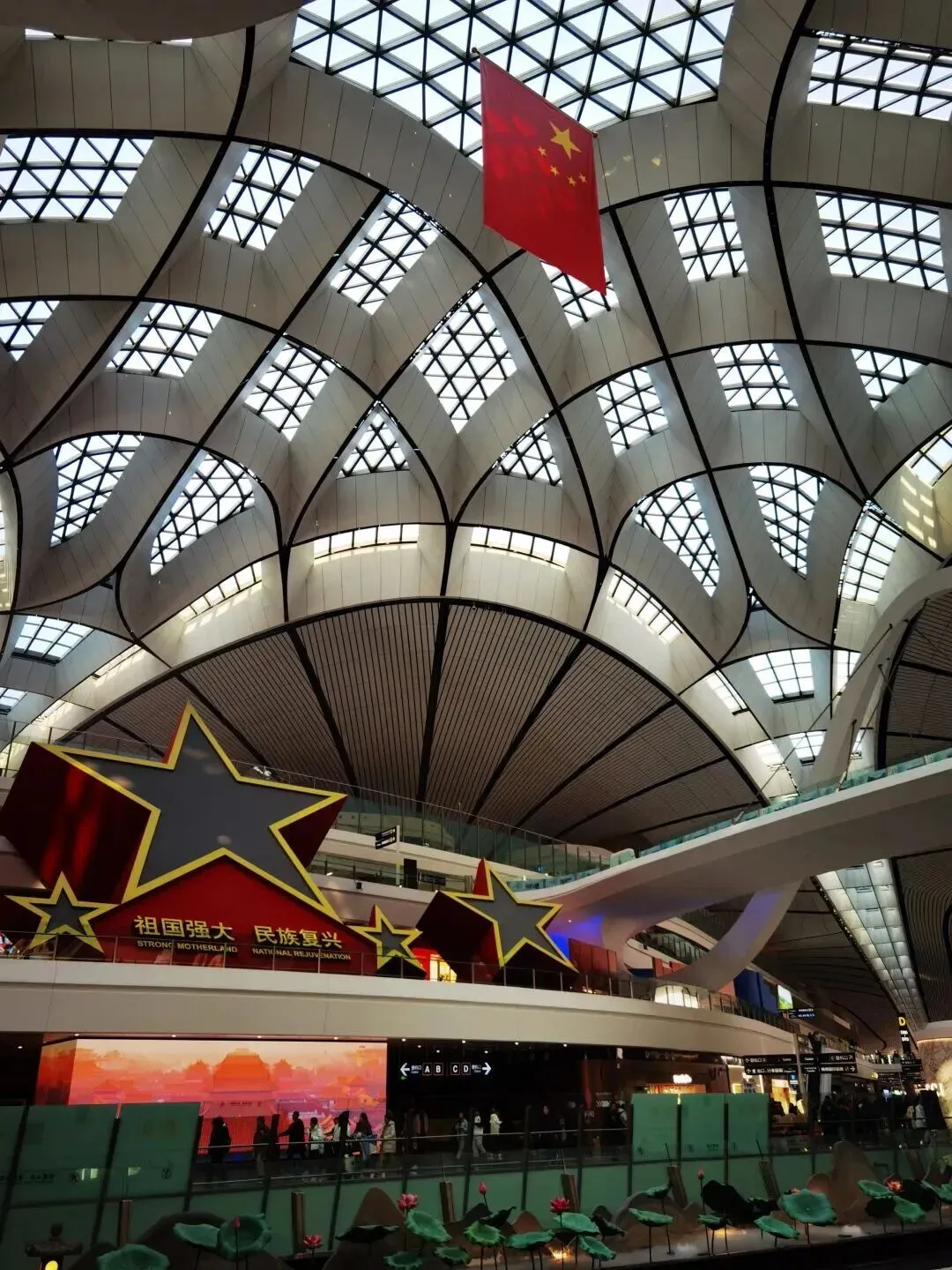 旅途的终点,是北京大兴国际机场——这座被誉为“中国新国门”的建筑,用极致的美学与匠心,惊艳了每一位旅人。流线型的设计如凤凰展翅,恢弘大气的航站楼通透开阔,自然光透过穹顶倾泻而下,现代感与艺术感完美融合,每一处细节都彰显着大国工程的气派与高端。