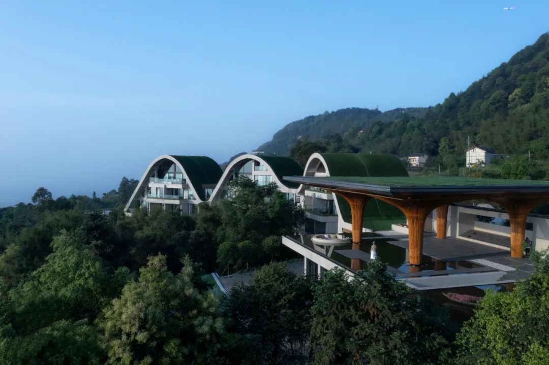 慢屋·青麦庄园坐落于渝北玉峰山森林公园,这里空气清新,素有“天然氧吧”之称,整个庄园占地面积268亩,立于群山环绕之间,登高眺望,整栋建筑的外观形状被设计成“山”字型波浪状结构,与身后起伏群山呼应开来,尽显设计师巧思。