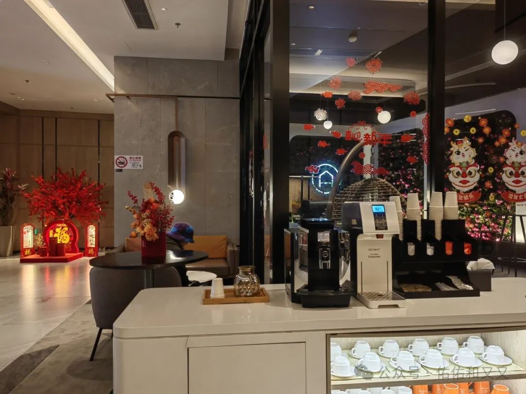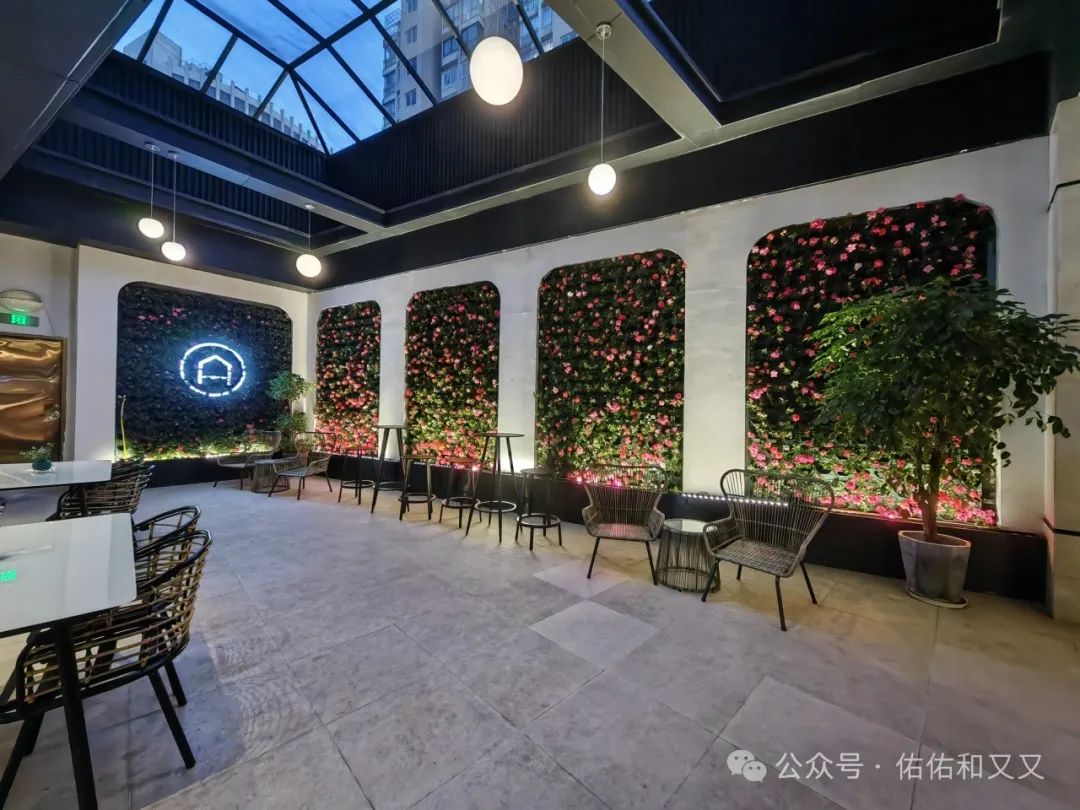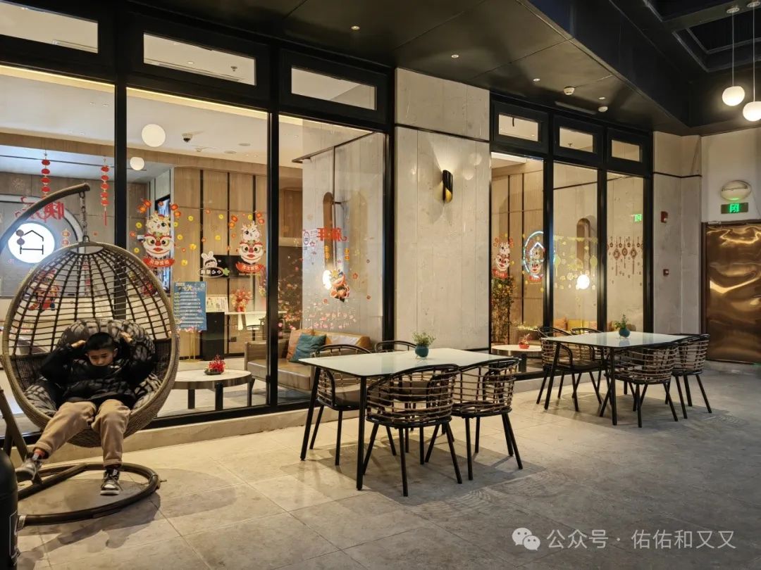 先上两张酒店的入住大厅,不是特别大但也精致呀!满满的细节感哦;后面两张是他们在夜晚极具氛围感的休闲区。