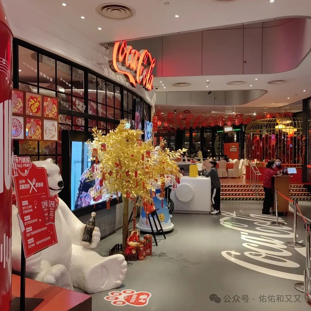 放下行李我们休息了一会儿,就从酒店慢慢走到东方明珠塔可口可乐欢乐餐厅用餐!(我们的年夜饭)原本是计划把年夜饭定在二球旋转餐厅的,可是我居然把吃饭这个事情完全抛掷脑后了,等我想起来的时候早就订完了,还好欢乐餐厅还有余位,也算是幸运,毕竟年三十晚上应该不太好订餐的。