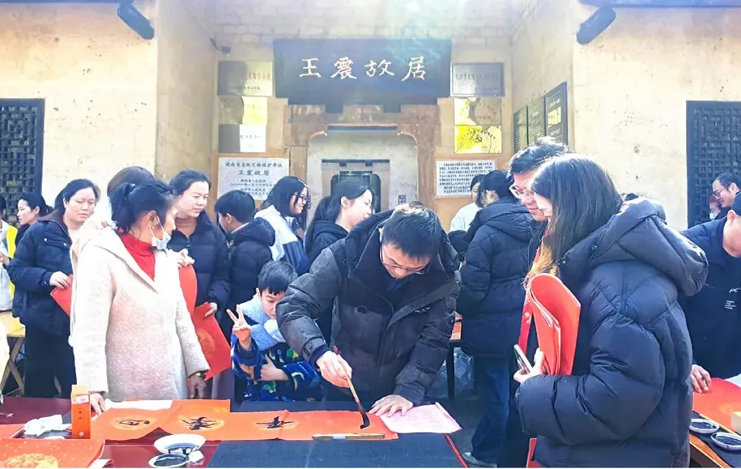 活动现场,书法老师们饱蘸浓墨、笔走龙蛇,将真诚的祝福凝于笔端。一副副寓意吉祥的春联、一个个饱满圆润的“福”字跃然纸上,免费送至游客手中。熙熙攘攘的人流中,既有重温历史的长者,也有探寻文化的青年,更有许多家长带着孩子前来开展研学之旅,在游览中增进家国情怀,让红色基因在年味中悄然传承。