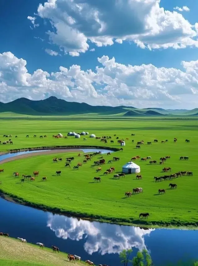内蒙古不用特意找草原, 呼伦贝尔的风会给你答案,车子开过那连绵的绿色,草叶擦着车身,远处的牛羊慢慢移动,好像撒在地上的云朵一样,傍晚的时候坐在草地上,天暗得很慢,晚霞把地平线染成暖橘色,连呼吸都变得轻柔起来。