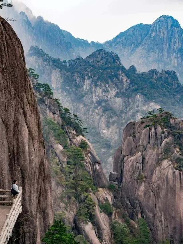 黄山, 是安徽人一提起山就首先想到的东西,不用等到云海翻涌的时候,单单看看路边的松树,树枝桠斜斜地长着,贴着岩石扎根,就能看好一会儿,石阶被踩得特别光滑,雾飘过来的时候把峰峦包起来,雾散了又露出棱角,就像一幅慢慢展开的水墨画。