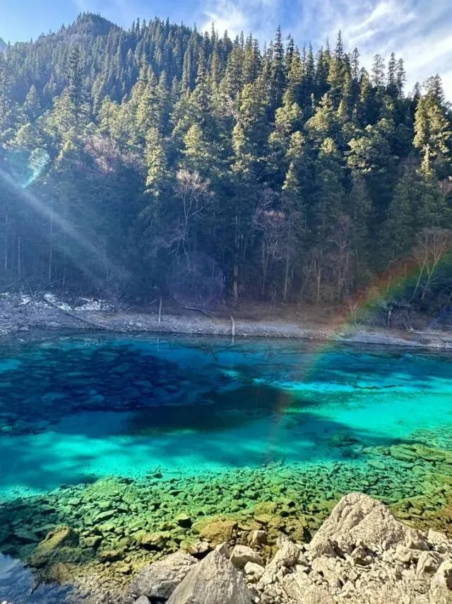 四川的九寨沟, 把水色玩得特别绝,海子中,有的蓝得透亮,有的绿得很温和,水底的枯木静静地躺着,阳光照下来,光斑就在水里晃动,站在湖边,不用说话,听听水流声,看看颜色慢慢变化,心就渐渐静下来。
