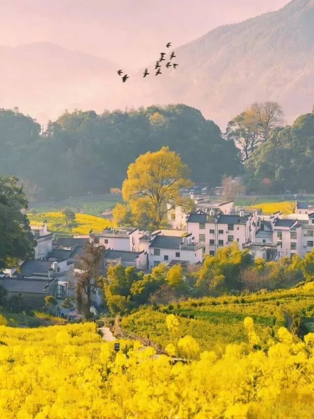 江西最叫人着迷的,就是婺源的春天,白墙黑瓦的村子藏在山坳里,油菜花顺着山坡漫延开来, 漫山遍野的金黄裹着微风,清晨的薄雾漫过屋檐,溪水绕着村脚流着,就像一幅被时光忘掉的田园画卷。