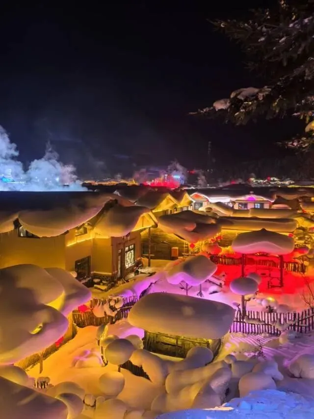 黑龙江的冬天,是雪乡的童话世界,木头屋顶盖着厚厚的积雪,就像圆滚滚的奶油蛋糕,红灯笼在白雪里面特别显眼,夜晚的时候,雪花偷偷地飘落下来, 灯火是黄色的,在清冷的空气里,全是安静又能让人心情变好的氛围。