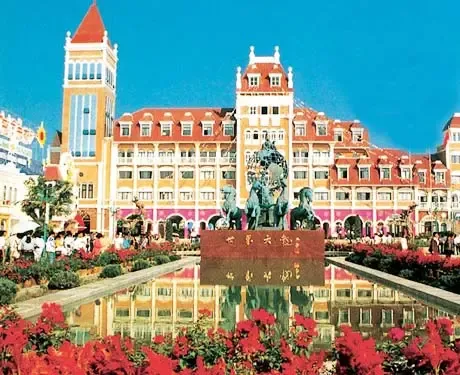 这里汇集了世界上100多个国家的建筑雕塑,设有时代广场、巴黎歌剧院、古希腊剧场、阿拉伯剧场、英国剧场等六大剧场和飞机舰船表演、综合游乐场、水上运动场等四大游乐区。