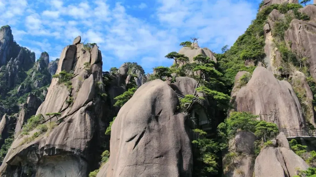 三清山经历了14亿年的地质变化运动,风雨沧桑,形成了举世无双的花岗岩峰林地貌。