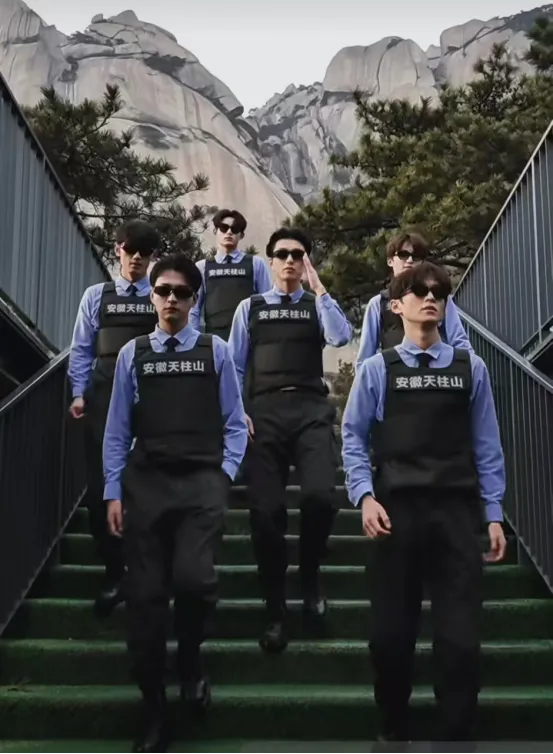 保安男团空降景区各大打卡点,他们或值守巡山,或在云雾缭绕处翩然现身。游客可在游览途中与这些“天柱山限定NPC”不期而遇,合影打卡、互动游戏。他们既是守护者,也是风景线。来天柱山,偶遇属于你的那一份惊喜!