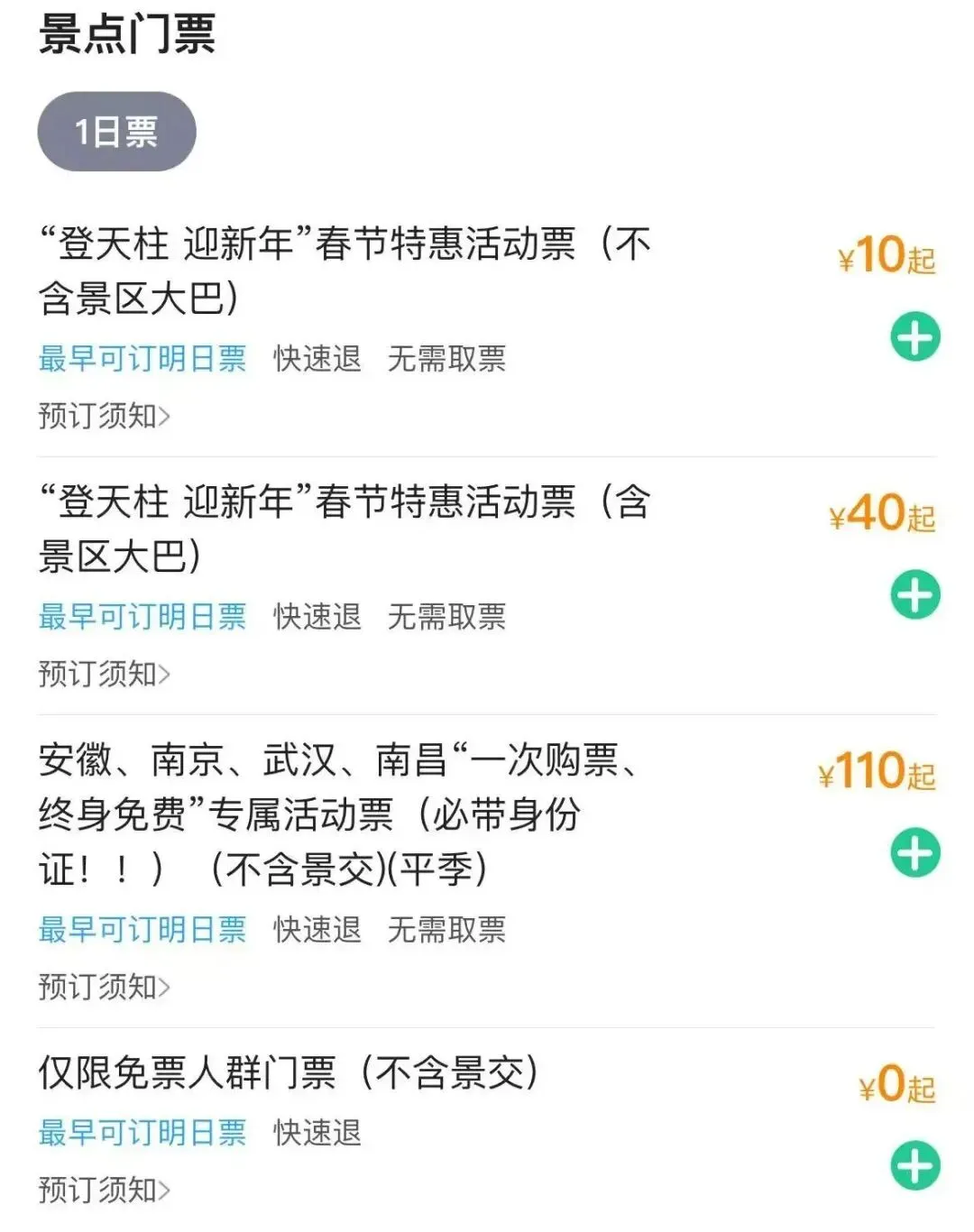 景区交通、索道、夜游项目等费用需另行购买,不包含在活动票内;