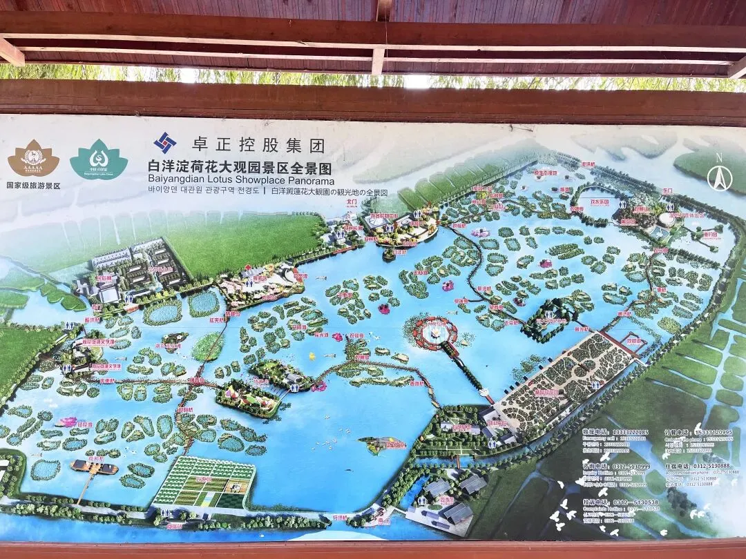荷花大观园整体比较大,比较不方便的是没有一条路线可以一直走不回头把所有地方逛完,从地图上也可以看出来,有一些岔路可以通到淀中心的位置