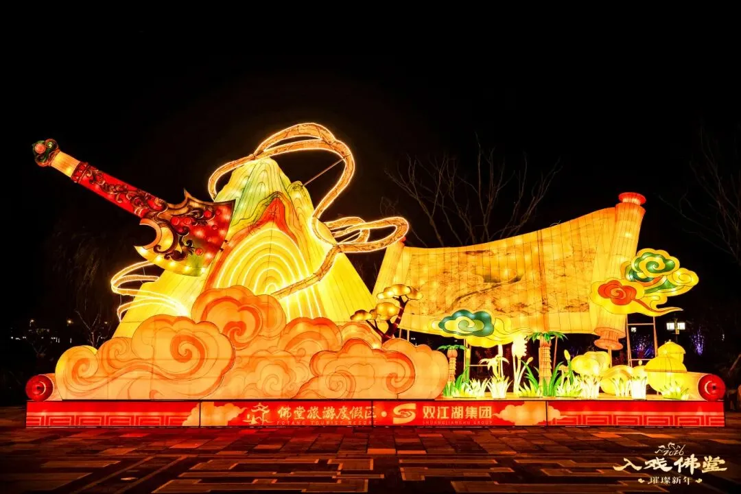 新春伊始,佛堂旅游度假区便被浓浓的年味包裹。双江湖文旅公司精心统筹,对佛堂古镇、云黄山及湖区等核心区域进行全方位装扮,糖糖IP、马到成功、开天辟地等主题大型灯展璀璨绽放,光影交织间成为游客争相打卡的“网红”地标,点亮古埠夜间经济。