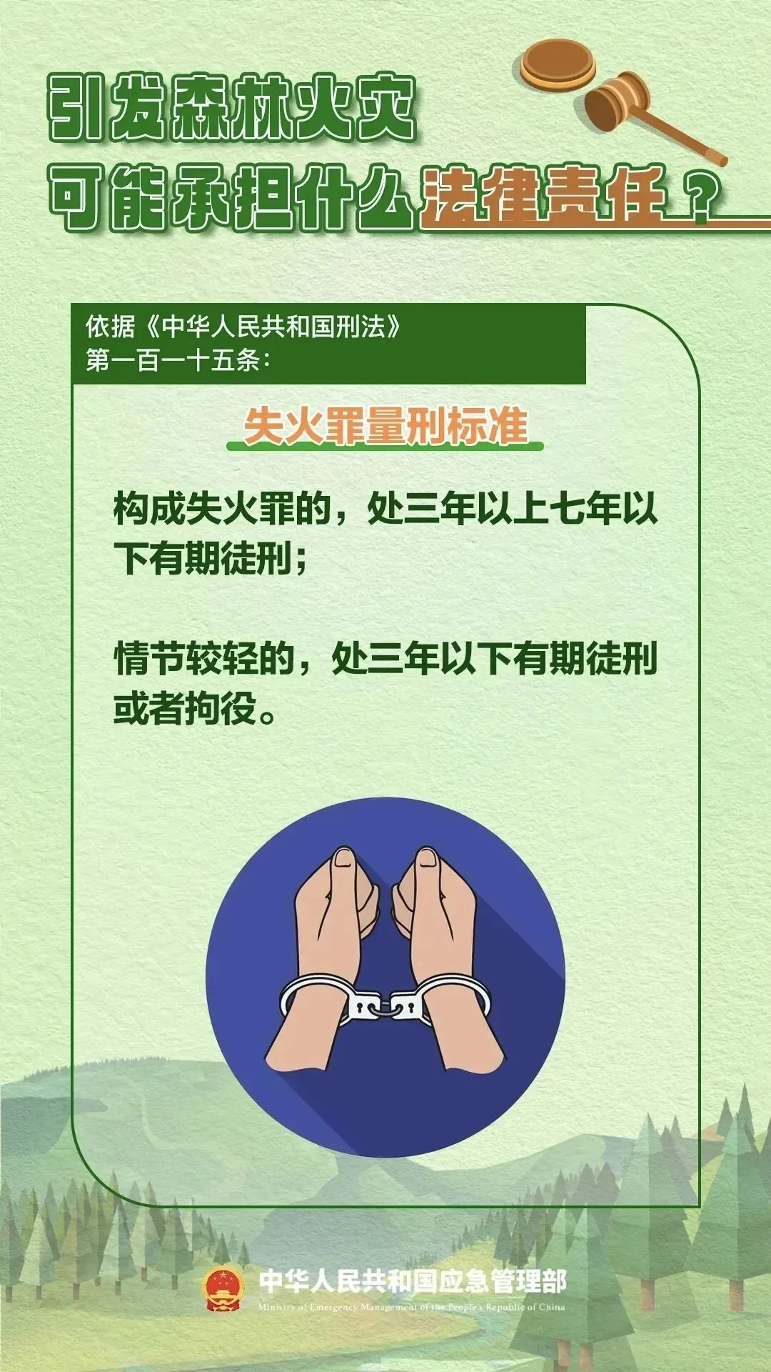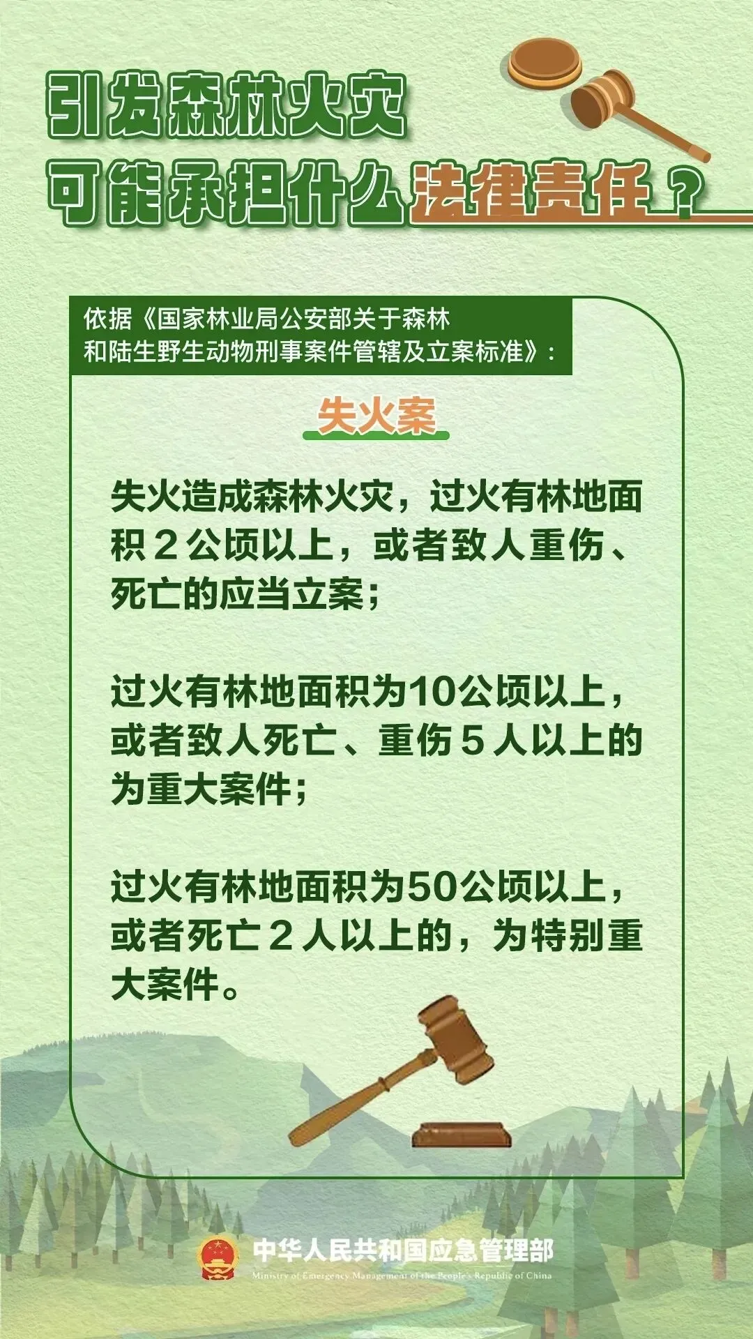 当前已进入春季森林防火紧要期,天干物燥、大风天气频发,多地接连发生森林火情。《森林草原防灭火条例》明确规定,防火期内违规野外用火,必将承担相应法律责任。