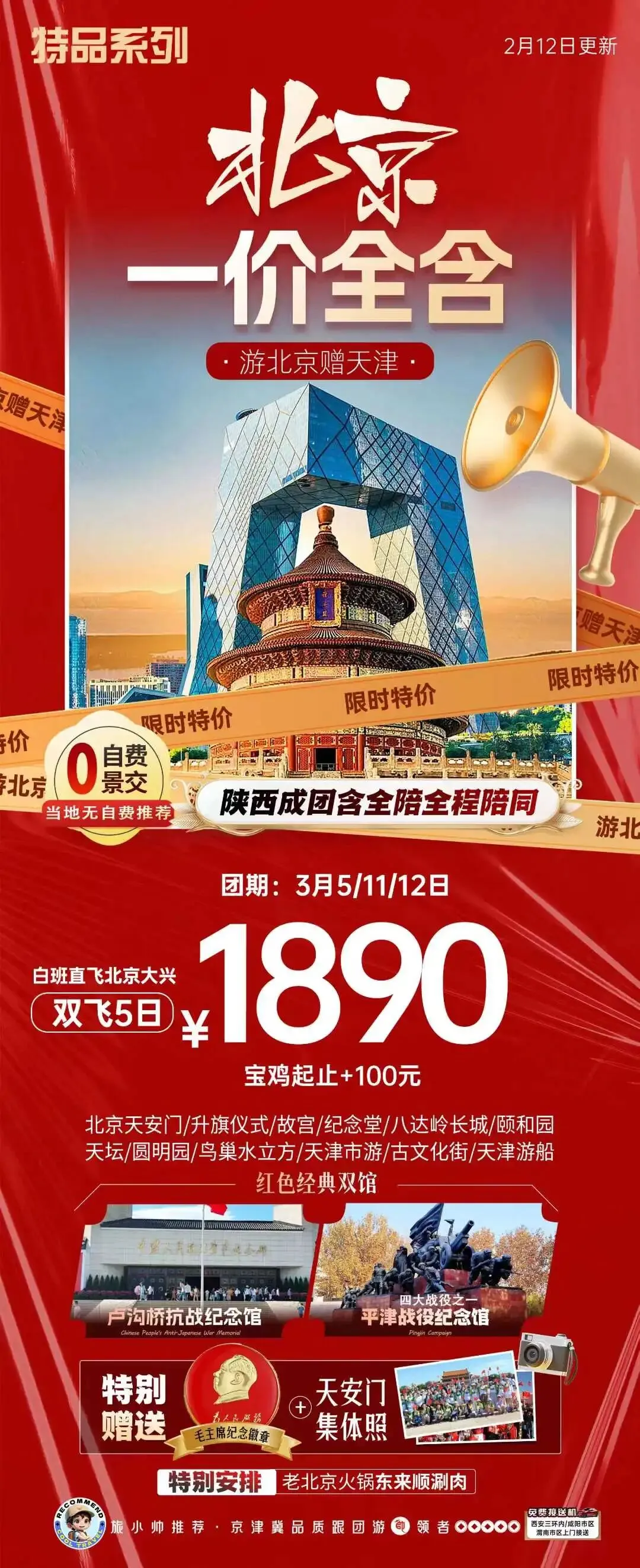✈️ 北京一价全含-特价双飞🌍 全景京津冀晋-全景联游