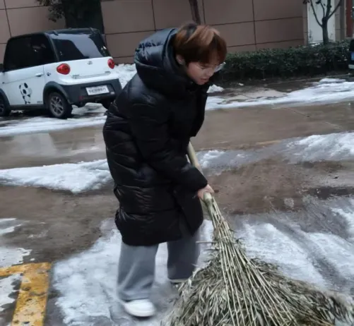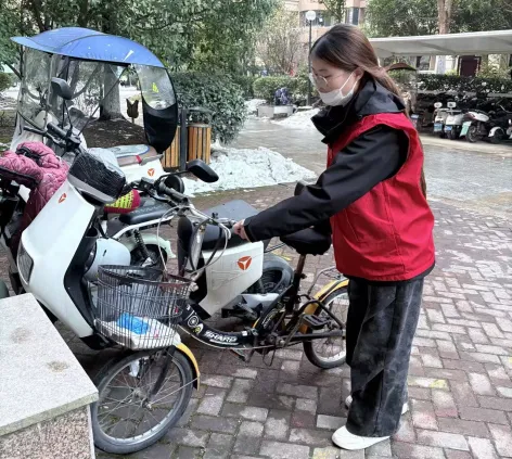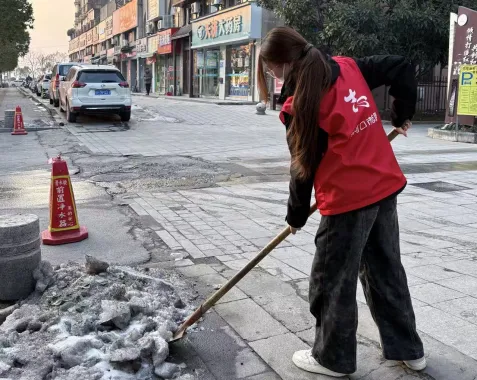 凛冬砺行,志愿争先。酒店管理2402班曾婧怡同学在家乡襄阳市老河口市光明社区勇作先锋。她执持锹帚,清扫主干道、单元出入口及坡道积雪,全力保障居民出行通畅无碍;又与志愿者同伴协同聚力,将楼道间、绿化带旁占道停放的非机动车,逐一规范归置至划定区域。此次冬日志愿之行,既锤炼了她的实践动手与团队协作能力,更令她笃悟青年学子所肩负的社会责任与使命担当。
