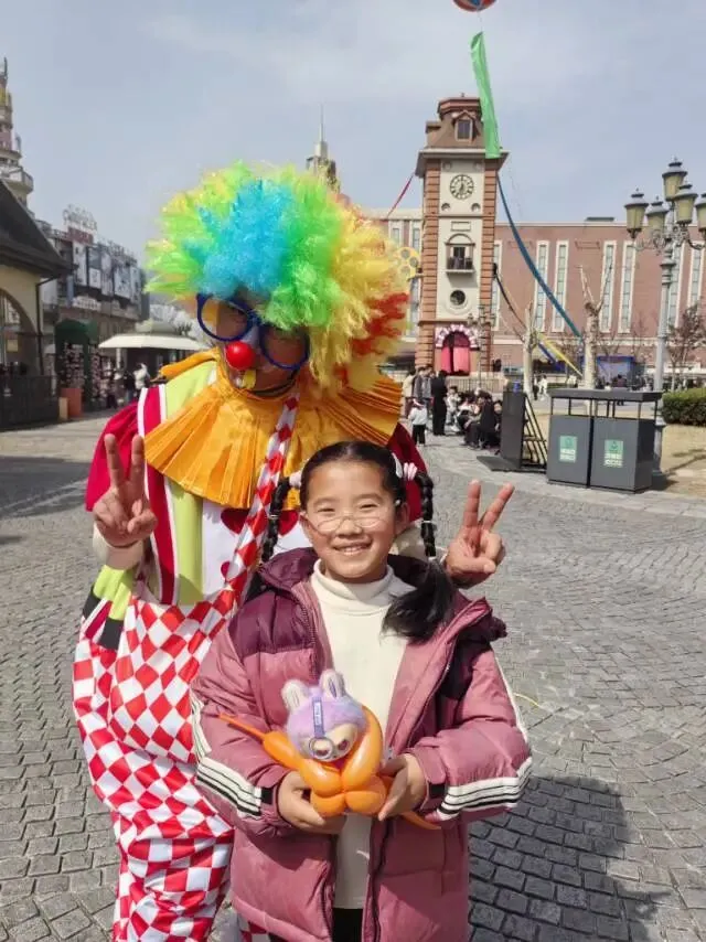 女儿手里的拉布布玩偶,还收到了小丑特意送的小围巾,让孩子开心了许久。
